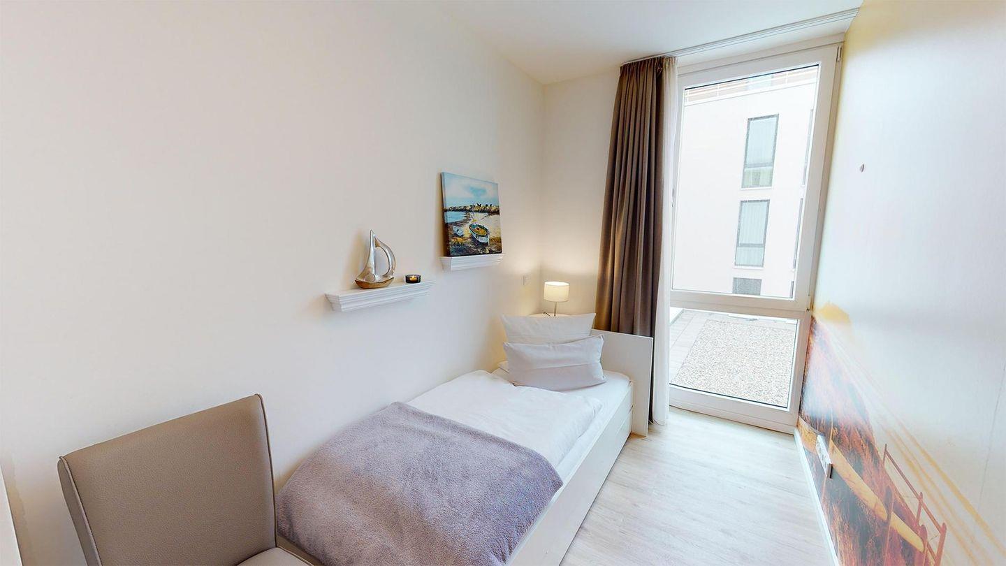 Das 100 m² große 4-Zimmer Apartment befindet sich im 2. Obergeschoss des Hauses G. Es ist für eine Belegung mit 6 Personen ausgelegt.