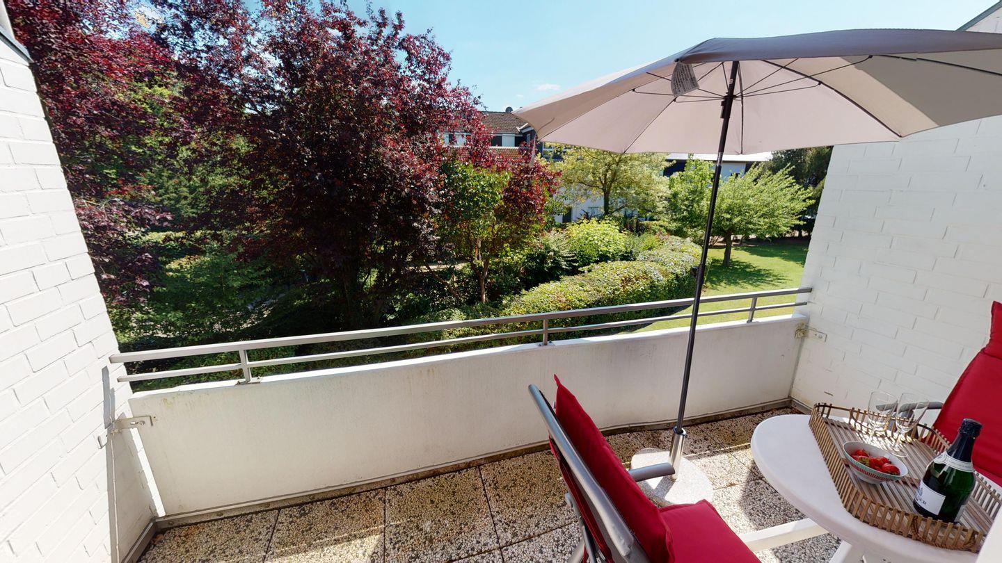 Ein besonderes Highlight ist der möblierte Balkon, auf dem Sie in Ruhe die Sonne genießen und entspannte Stunden verbringen können. Ihr Auto können Sie sicher und bequem auf dem wohnungseigenen Tiefgaragenstellplatz parken.