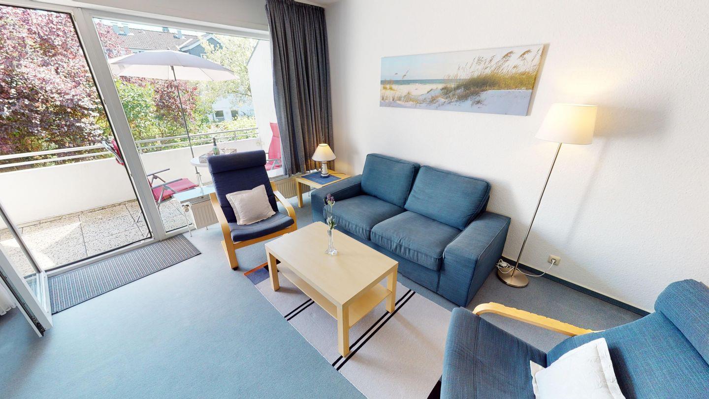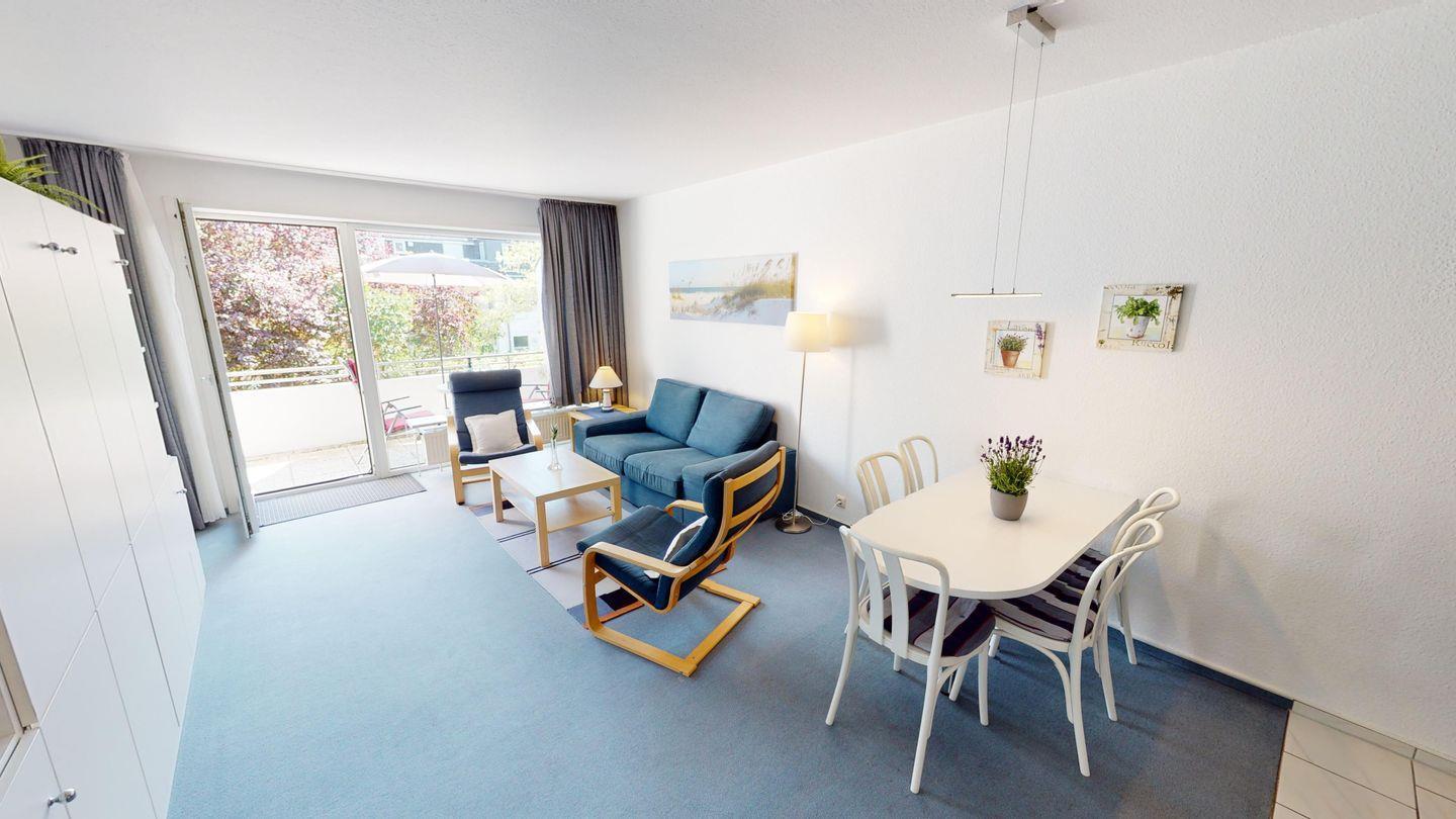 Helle 2-Zimmer-Ferienwohnung in Pelzerhaken mit Balkon und eigenem Parkplatz, ideal für einen erholsamen Urlaub am Meer.