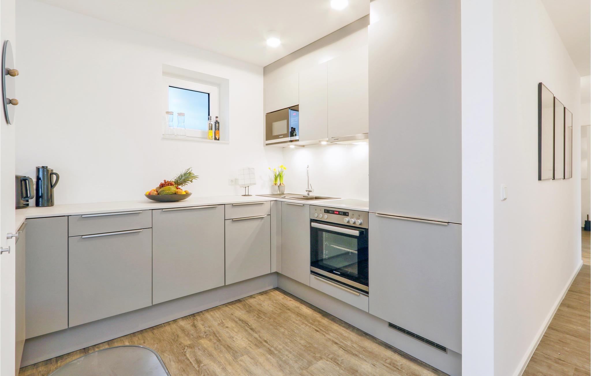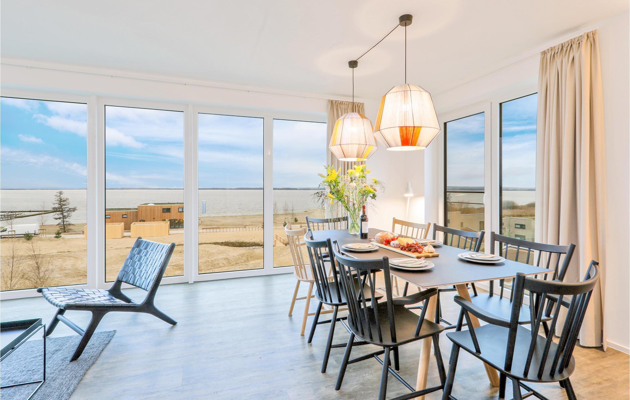 Auf mehr als 100 Quadratmetern Wohnfläche finden Sie dank dem Bio-Kamin auch an kalten Tagen eine behagliche Wärme vor, aufgrund der bodentiefen Fenster ist die Wohnung lichtdurchflutet und besonders lebenswert. Bis zu 8 Personen finden hier immer ein gemütliches Plätzchen für sich. Vom Balkon aus können Sie gemeinsam mit Freunden oder der Familie den Blick weit über die Landschaft und das Wasser schweifen lassen. Ihr Auto parken Sie bequem auf dem eigenen, inklusiven Stellplatz.