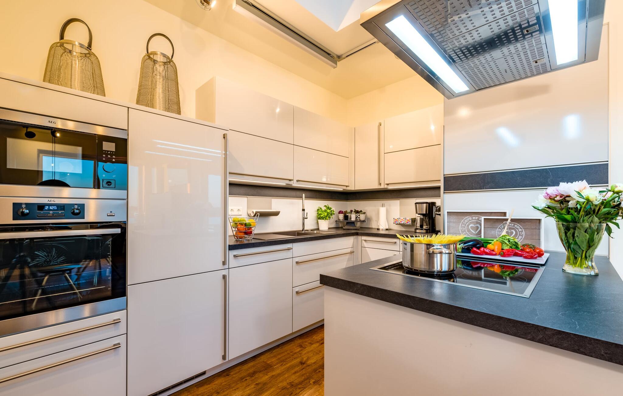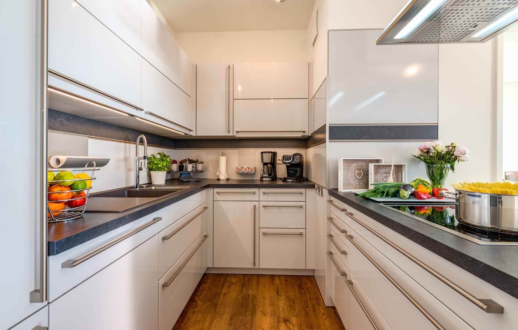 Stilvolles, hochwertiges Mobiliar dominiert alle Räume und strahlt Gemütlichkeit aus. Die hochmoderne Küche mit Kochinsel ist mit Markenprodukten ausgestattet und lässt keine Wünsche offen. Hier zu kochen ist ein entspannendes Erlebnis, denn der Blick auf die vorbeifahrenden Schiffe ist immer dabei. Die bequemen Sofas im Wohnbereich laden zum Faulenzen oder zum LCD-Fernsehen ein.