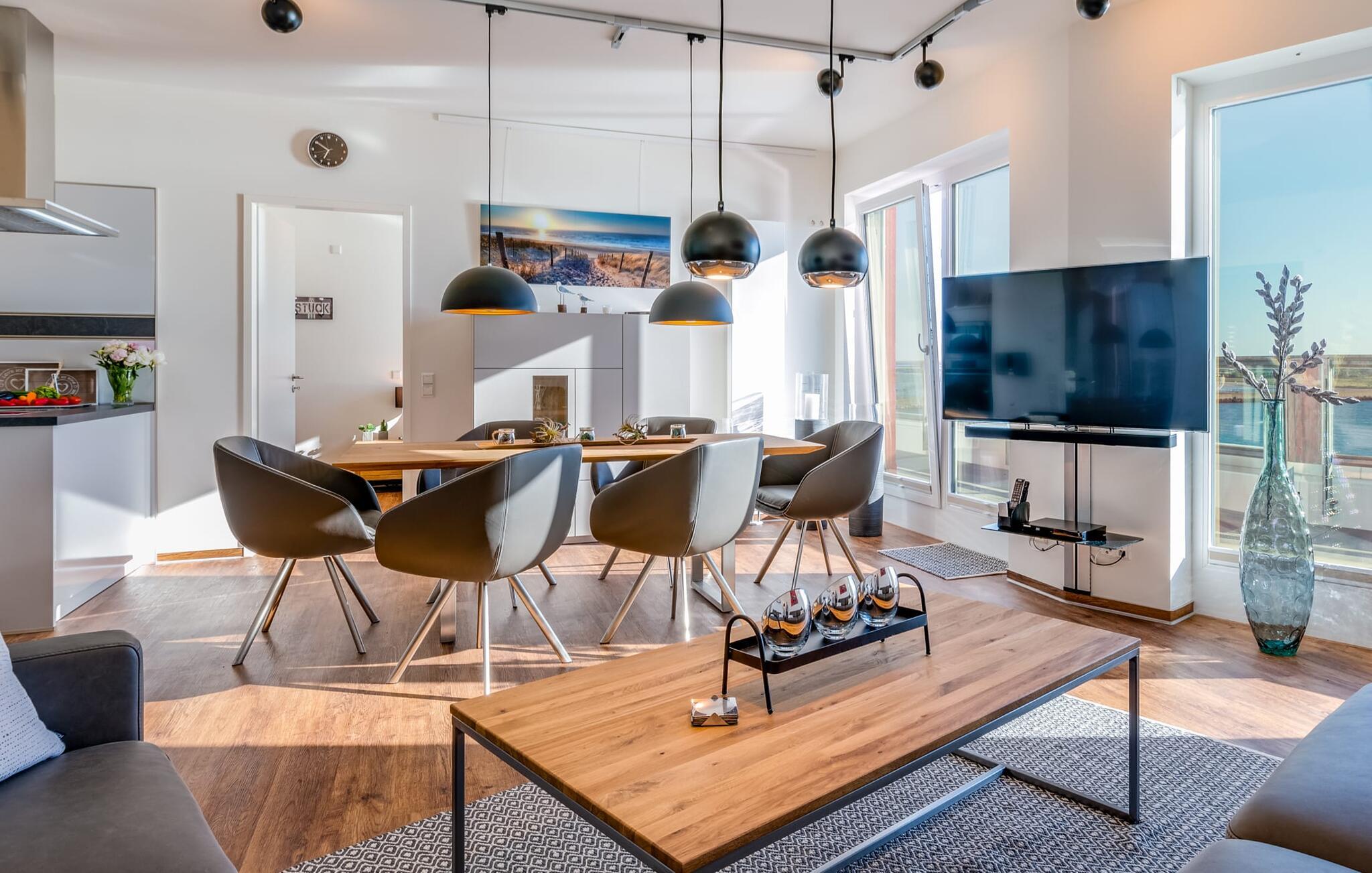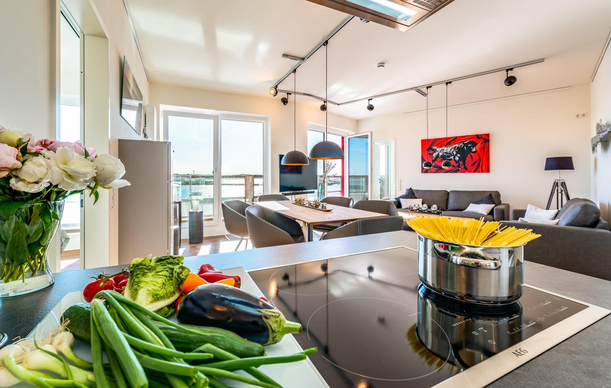 Erleben Sie HOCHGENUSS, ein elegantes Penthouse mit spektakulärer Dachterrasse und Ostseeblick im OstseeResort Olpenitz.