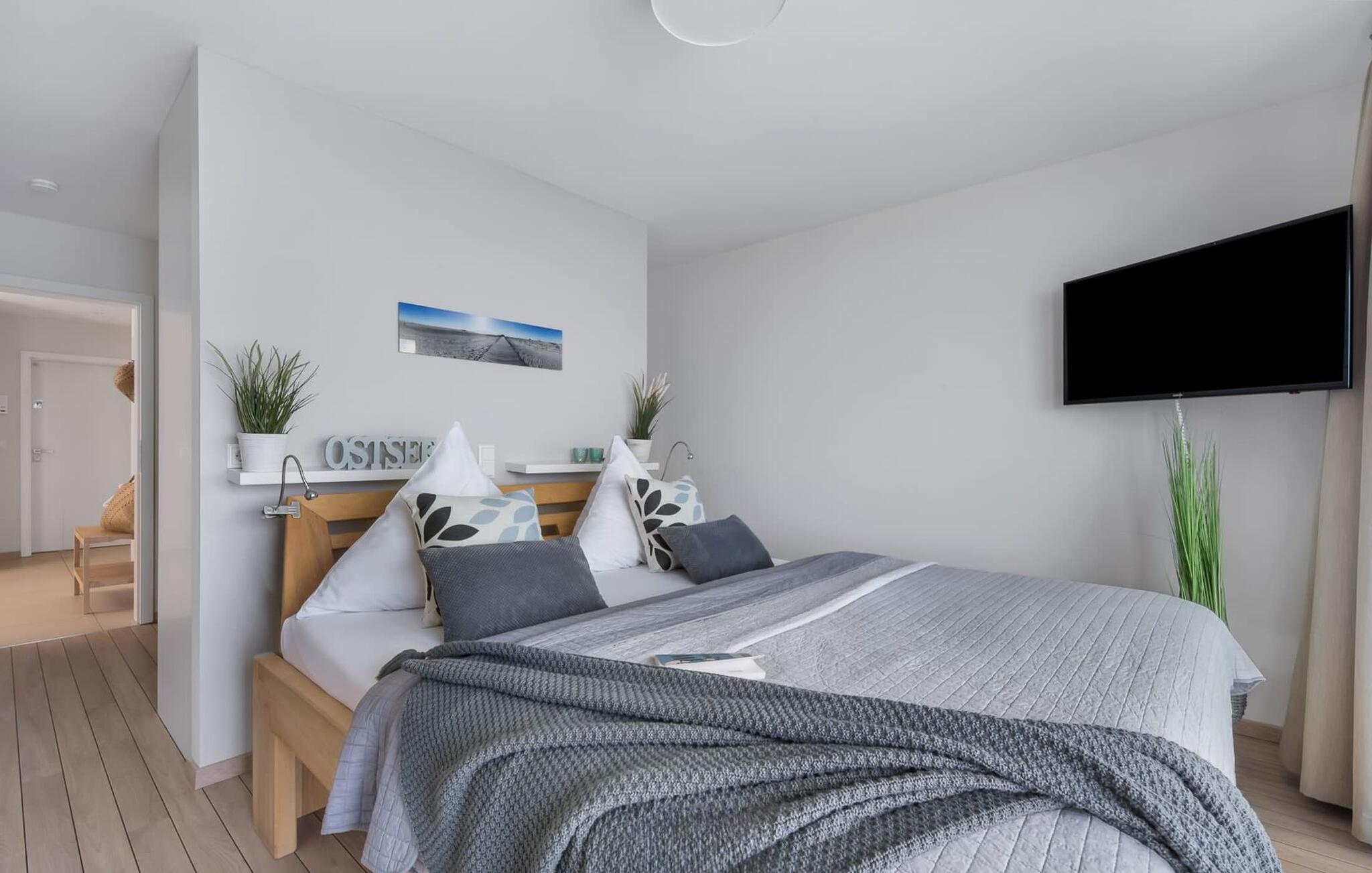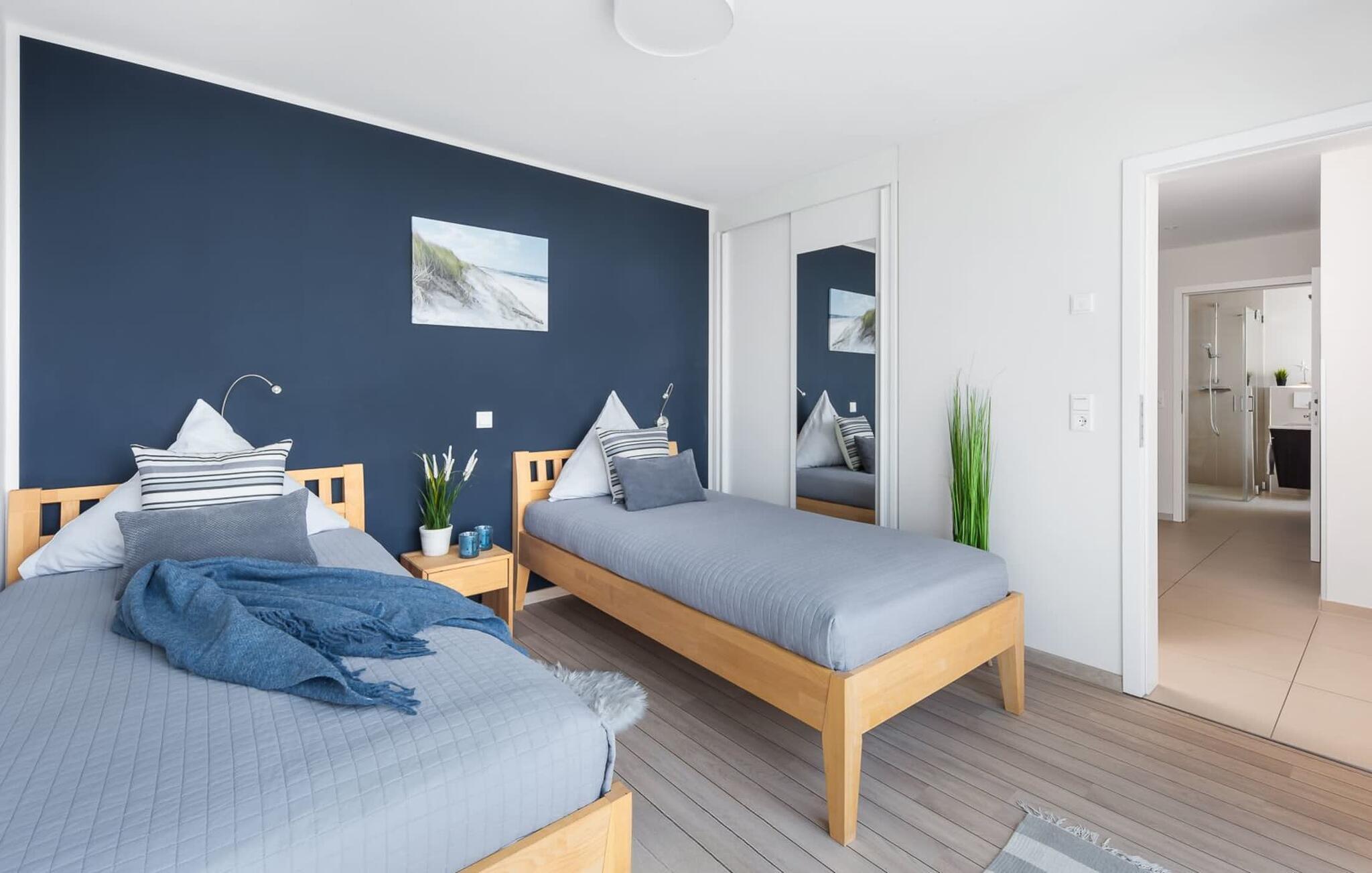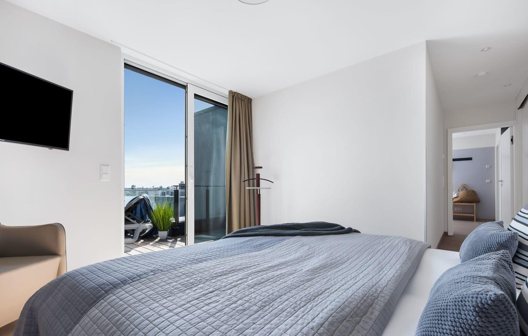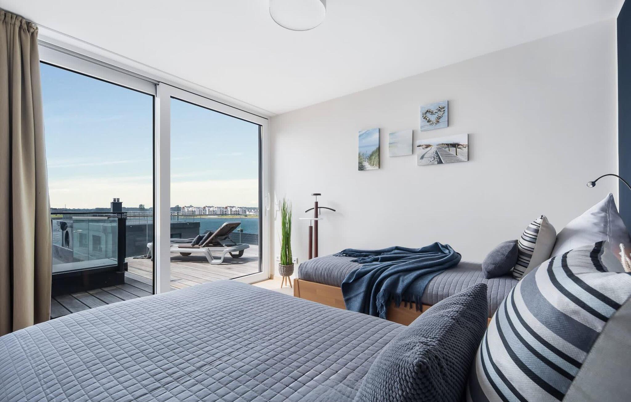 Drei Schlafzimmer mit Wasserblick, eines zur Ostsee und zwei zur Hafenseite hin ausgerichtet, machen den Urlaub am Meer perfekt.