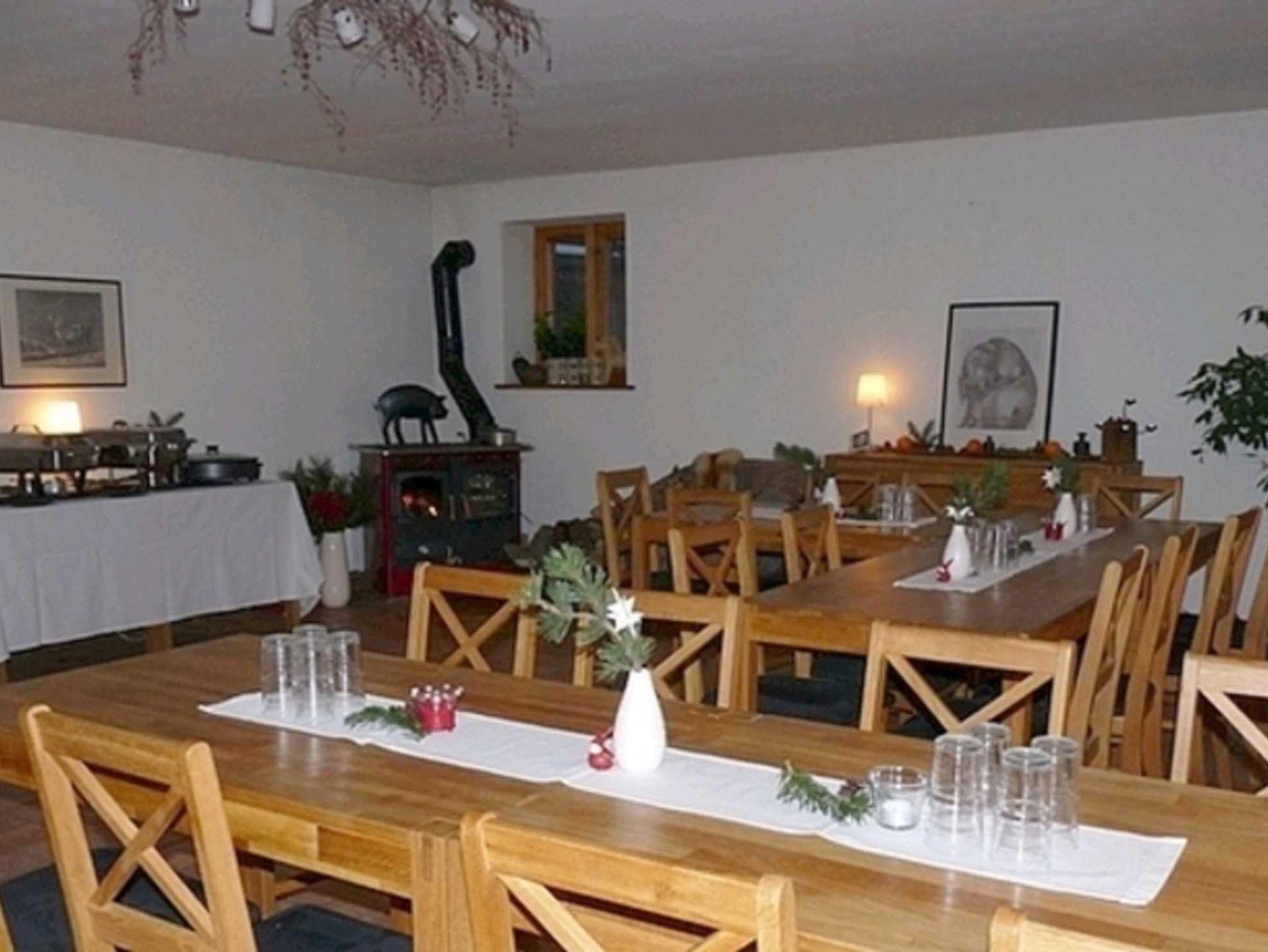 Durchfahren Sie die Allee alter roter und weißer Kastanienbäume, wenn Sie dann annehmen jetzt kommt kein Haus mehr, dann sind sie auf dem Landhof zur Meierei angekommen. Eingebettet zwischen Wiese, Wald und Feldern finden Sie das backsteinerne Wohnhaus, ein kleines backsteinernes Häuschen und das 2008 neu gebaute Ferienhaus mit den roten Holzfenstern und dem typisch mecklenburgischen Holzgiebel. In der Ferienwohnung und vier liebevoll eingerichteten DZ finden ca. 16 Personen eine gemütliche Schlaf- und Wohnstatt. Vorbeiziehende Rad- und Wandersleute können im duftenden Heulager Quartier finden. Ob Knüppelkuchen am Lagerfeuer, einem reichhaltigen Frühstücksbuffett, mit hofeigenen und regionalen Produkten, fallen Sie Wort wörtlich nicht vom Fleische. Der Gastraum mit seinem urigen Holzofen lädt zur gemütlichen Runde mit einem frisch gezapften Bier am Schachtisch oder zum Kartenspiel ein. Kinder erkunden den riesigen Naturspielplatz. Heulager, Kletterbäume, Angelteich mit Paddelkahn, Pferde, Katzen, Hund, Kaninchen und Hühner wollen entdeckt, gefüttert und gestreichelt werden.