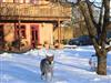 Sie sind über eine breite Holztreppe an der Stirnseite des Hauses, die in einen breiten Laubengang übergeht, von außen zu erreichen. Dieser Laubengang ist durch eine Holztür von der Treppe zu verschließen.