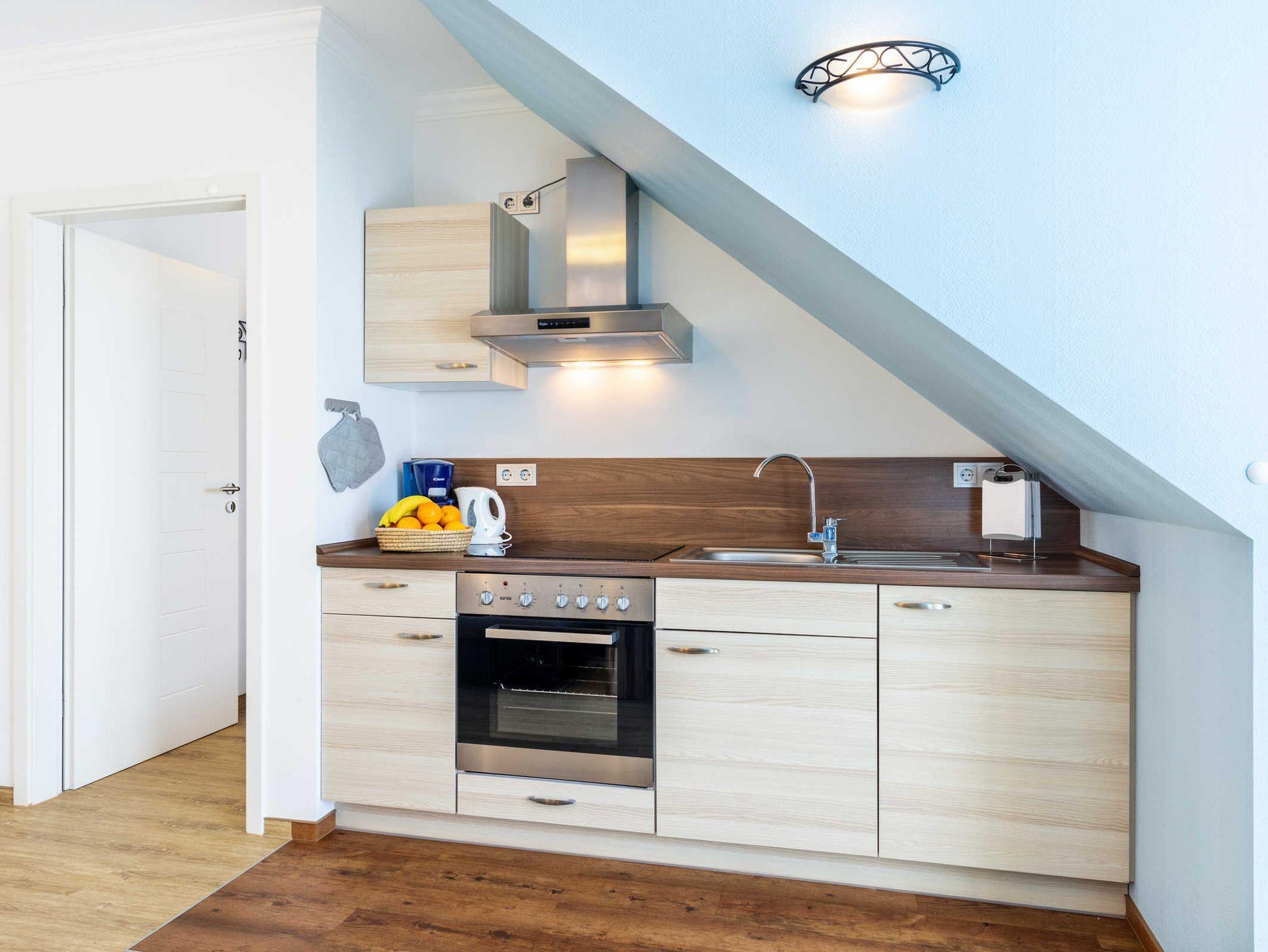 Die helle und gemütliche Ferienwohnung Lisa befindet sich im Obergeschoss des Ostseeferienhauses Drachenflieger. Die Ferienwohnung verfügt über ein separtes Schlafzimmer mit Doppelbett und Kleiderschrank, einen Wohn- Essbereich mit umfangreich ausgestatteter Küchenzeile (Kühlschrank mit Gefrierfach, 4- Platten- Herd, Backofen, Kaffeemaschine, Wasserkocher, Toaster) sowie einen Essbereich und Sitzecke mit ausziehbarer bequemer Schlafcouch. Vom Wohnbereich gelangen Sie auf den Balkon/Loggia. Bad mit Dusche und WC.