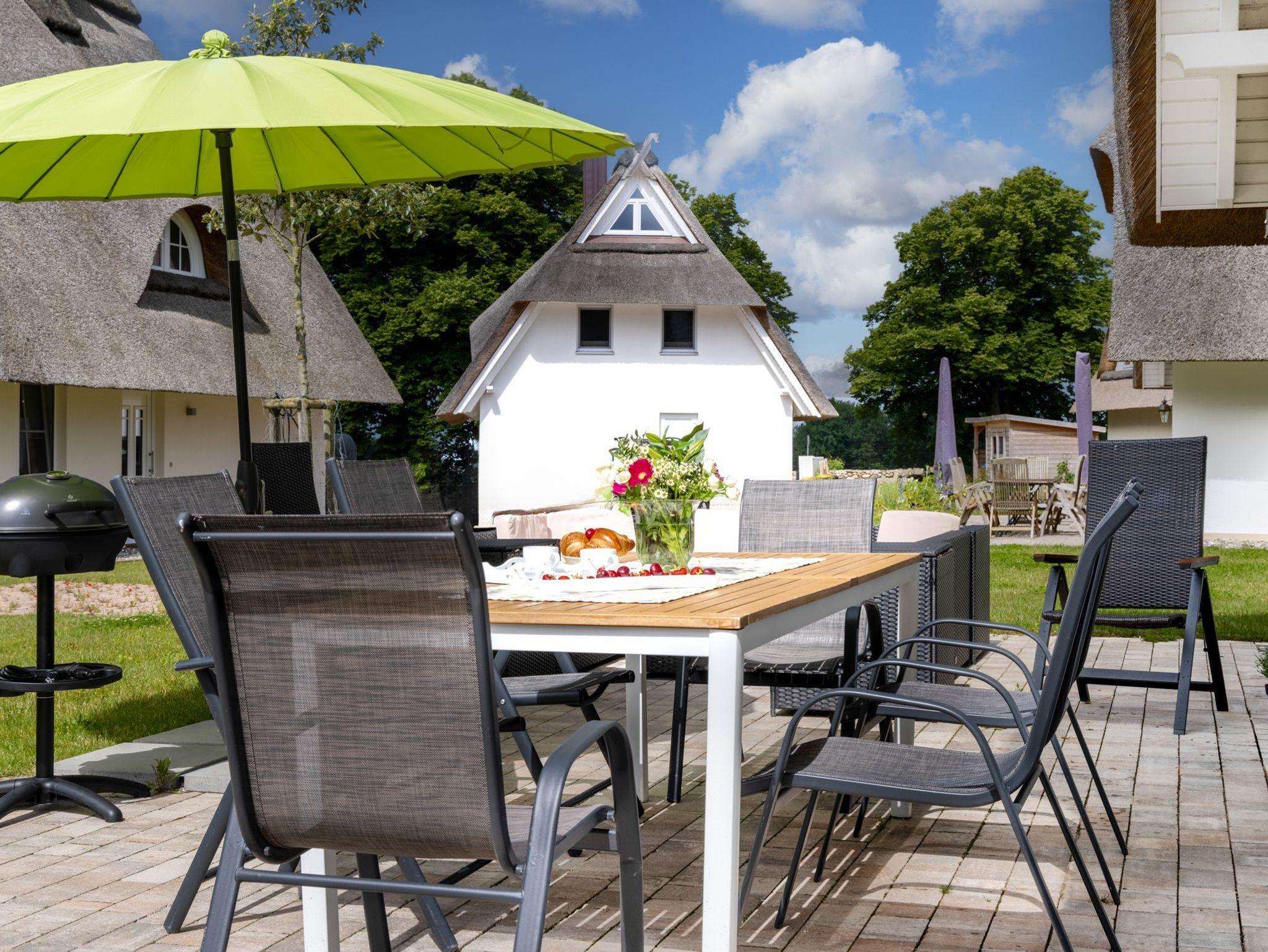Elegantes Ferienhaus Strandsegler unter Reet in Pepelow mit Sauna, Kamin und großem Garten, ideal für Familien und Wassersportler.