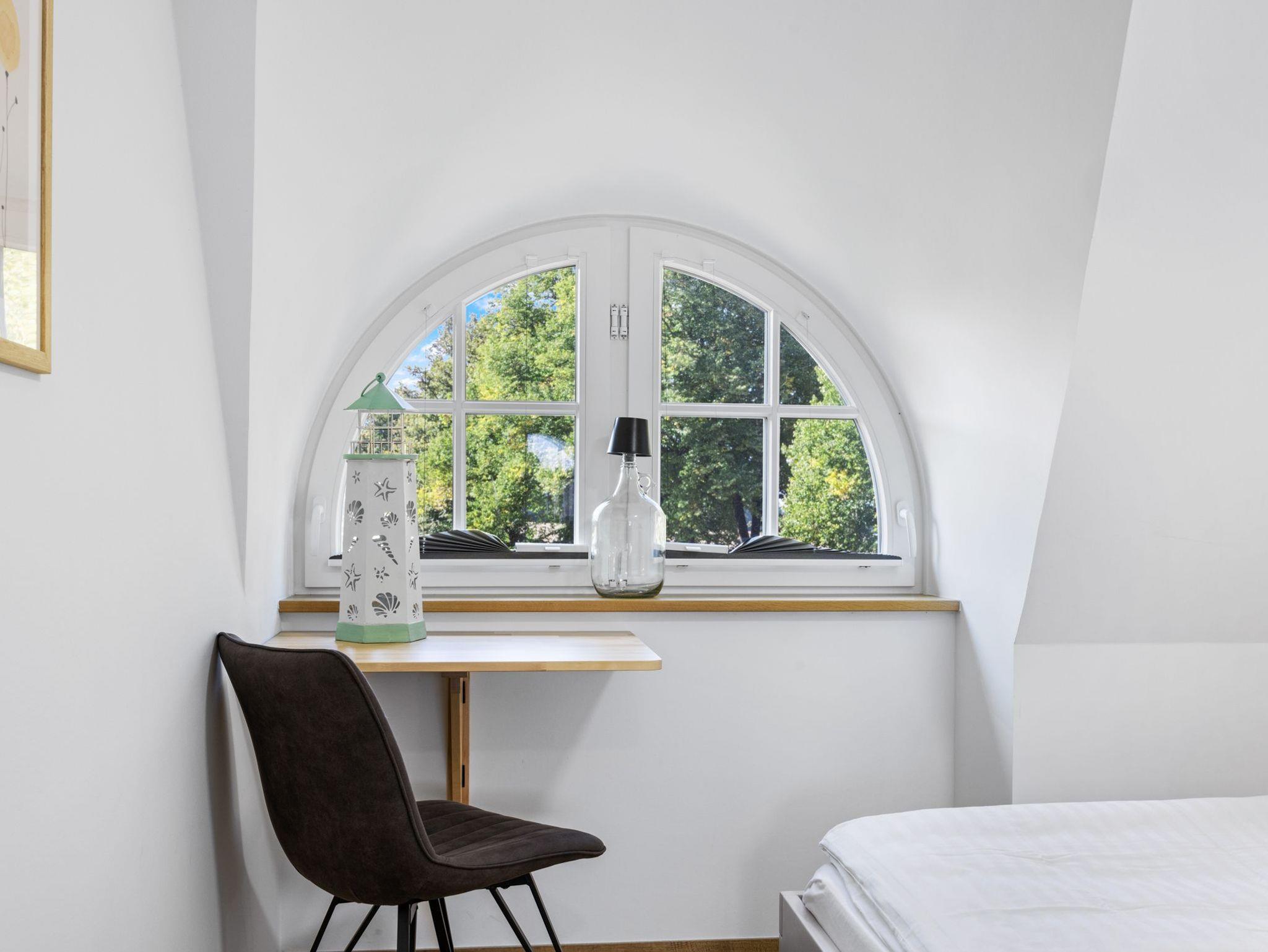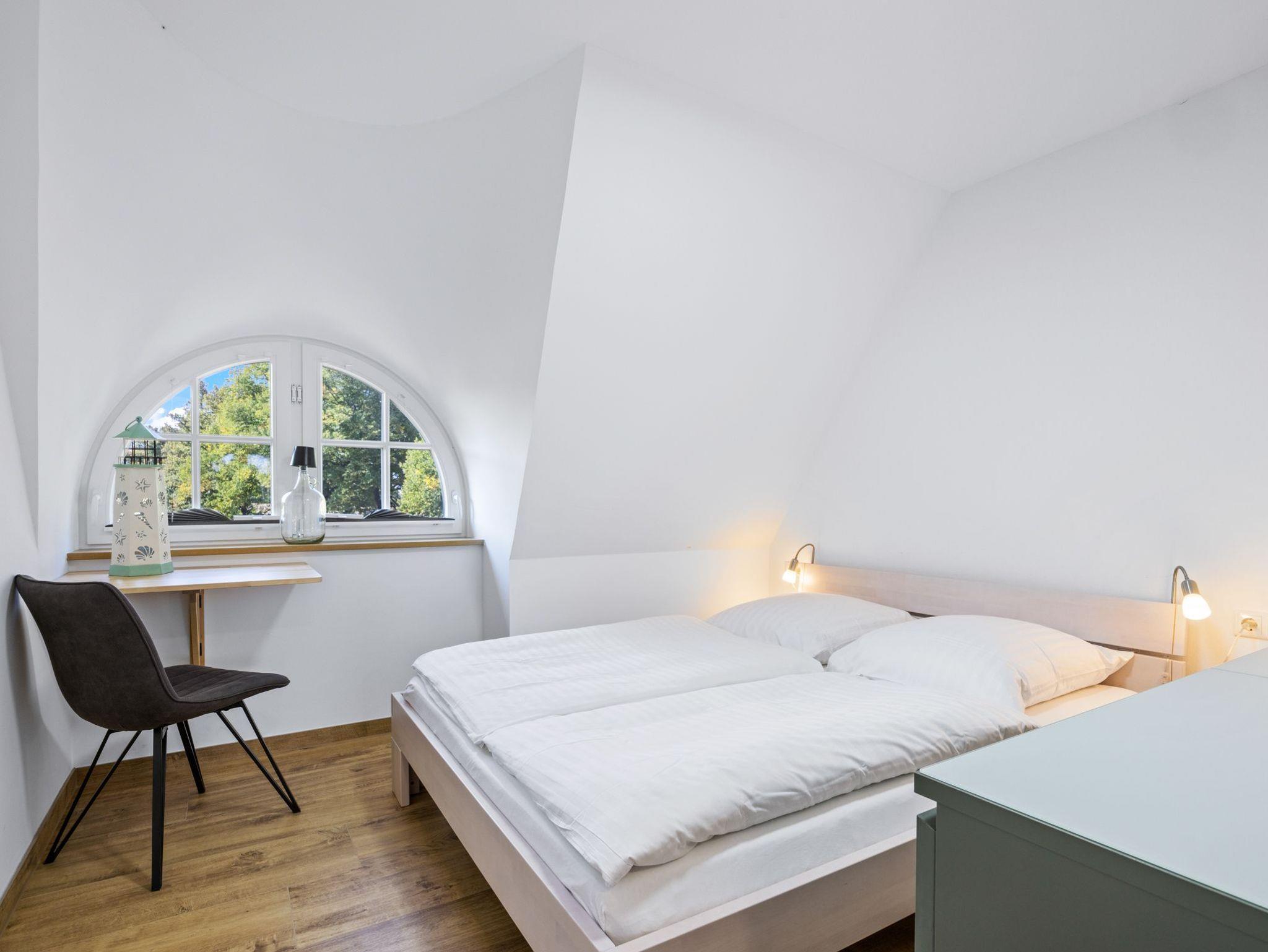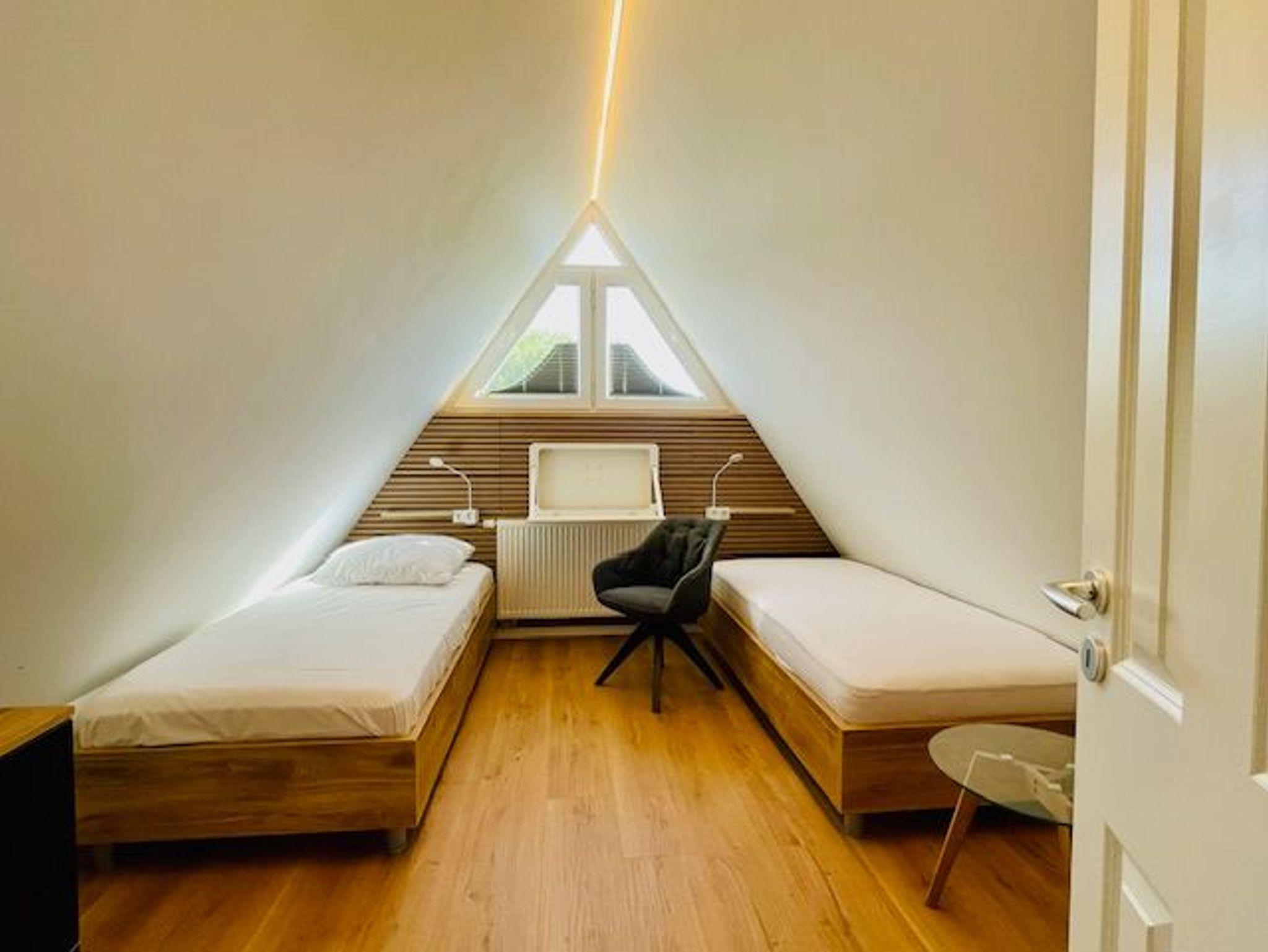 Im neu ausgebautem Dachgeschoss befindet sich das 3. Schlafzimmer mit 2 Einzelbetten (0,90 x 2,00 ), einem kleinen Scheibtisch, Komode und offenem Kleiderschrank.