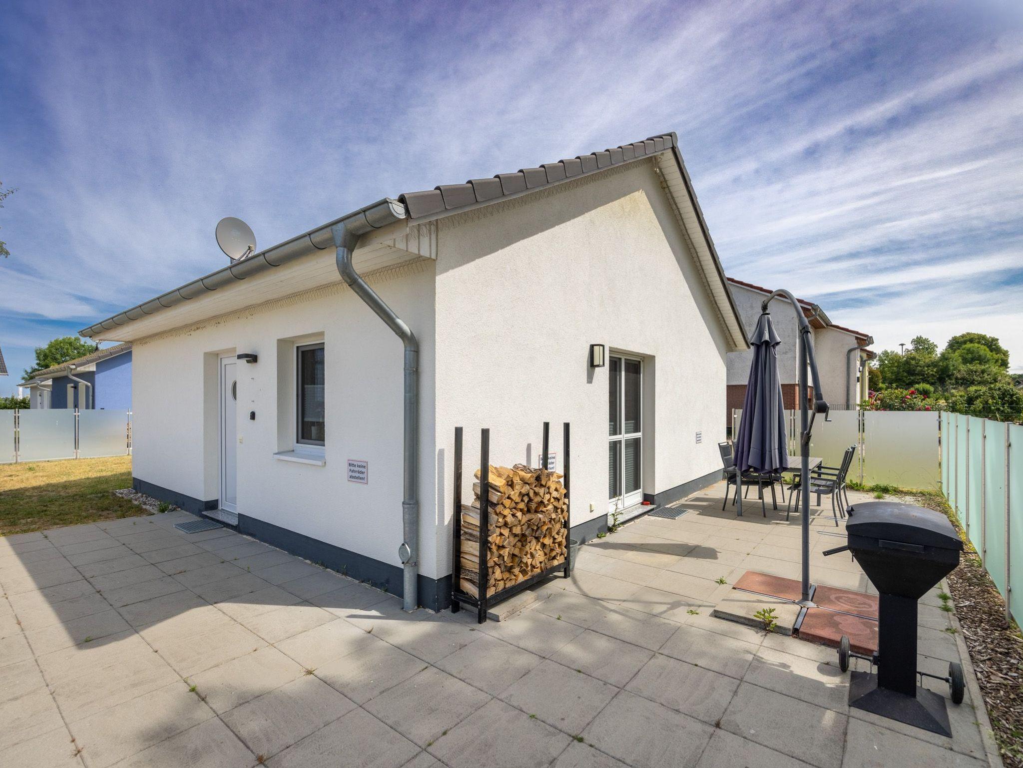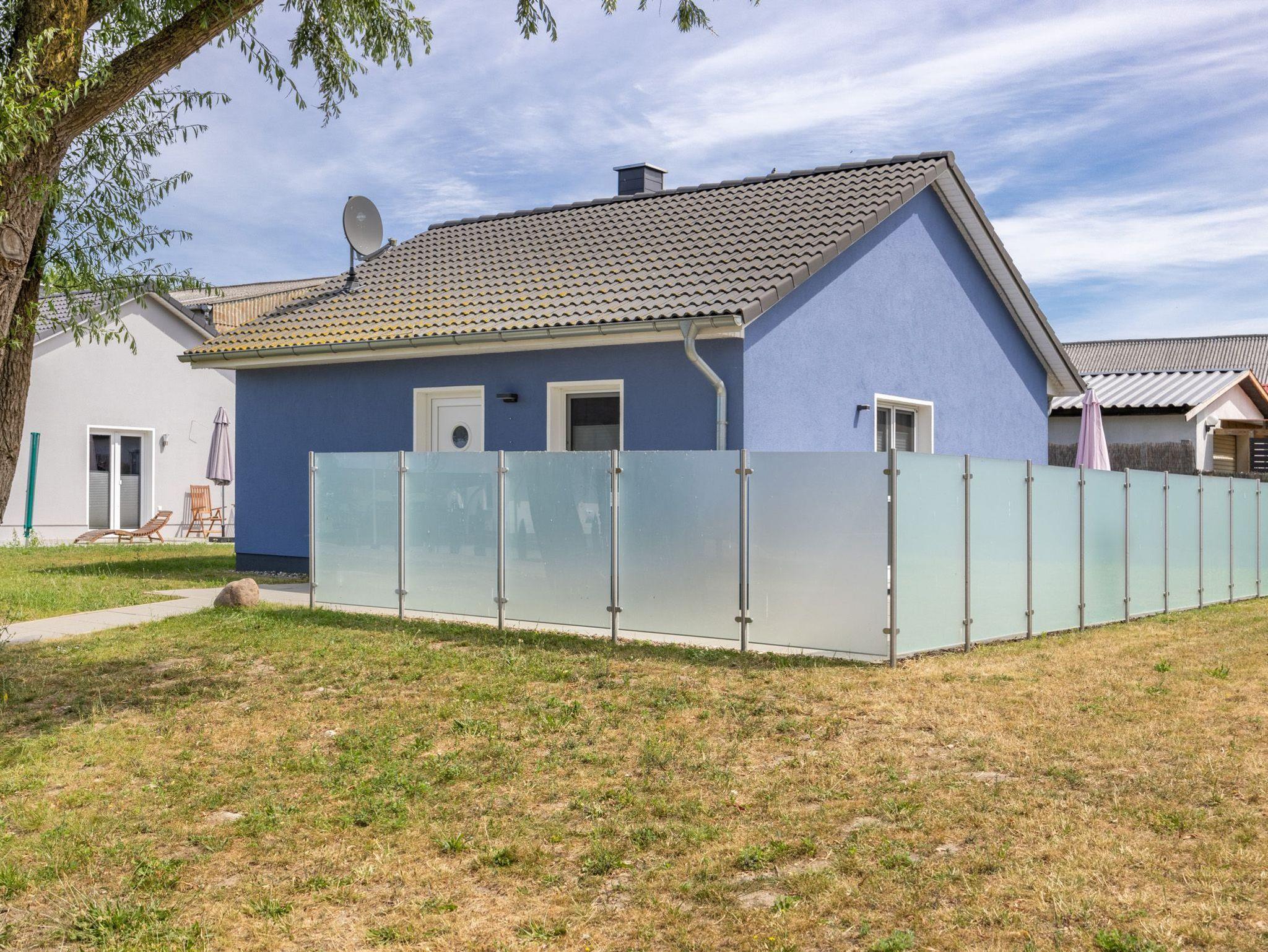 Zwei gemütliches 3- Zimmer Ferienhäuser, die direkt nebeneinabder liegen, ebenerdig auf jeweils 75 qm mit geschützter Sonnenterrasse und Blick auf das Salzhaff vom umliegenden Grundstück.