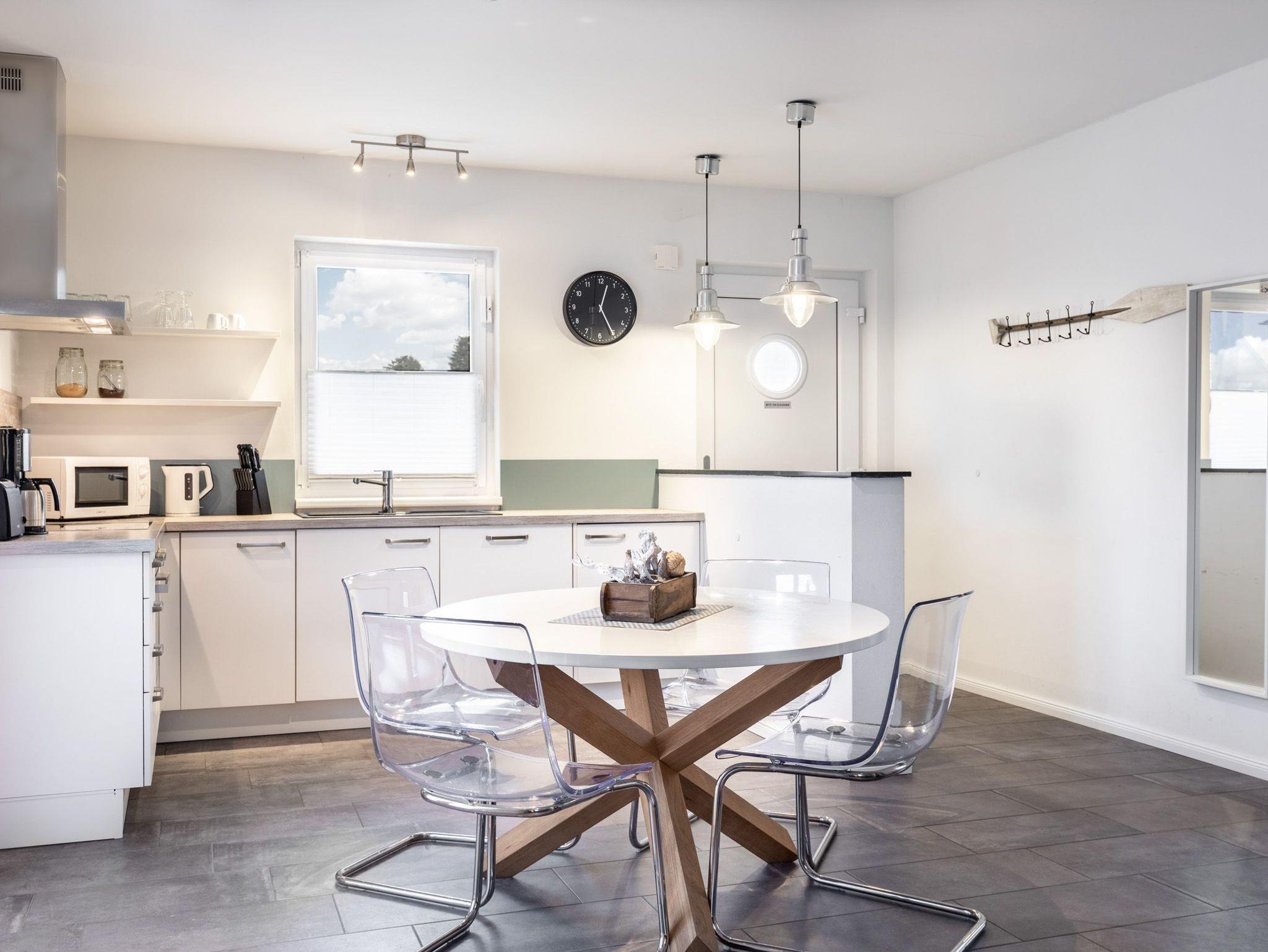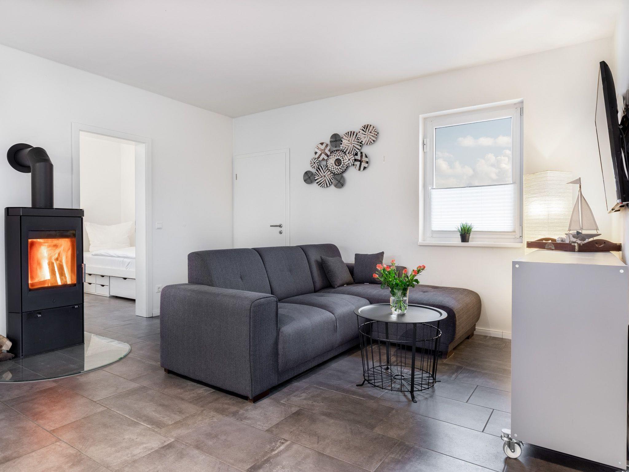 Die Lage und Ausstattung sind perfekt für Familien, Wassersportler, Aktivurlauber und Naturfreunde. Jedes Strand Ferienhaus verfügt über zwei separate Schlafzimmer. Eines mit Doppelbett und Kleiderregal und eines mit 2 Einzelbetten und Kleiderschrank. Der helle und weitläufigen Wohn- und Essbereich mit Kamin, Sofaecke, TV und Esstisch heißt die Gäste beim Betreten des Hauses willkommen. Die Küchen sind mit Geschirrspüler, Herd, Backofen, Mikrowelle, Kaffeemaschine, Wasserkocher und Toaster komplett ausgestattet und bietet viel Platz für gemeinsames Kochen und Schlemmen im Urlaub. Vom Wohnzimmer aus gelangt man direkt auf die möblierte und große Sonnenterrasse mit Grill. Die Terrassen verfügen über einen Wind- und Sichtschutz. Das Bad ist je mit Dusche und WC ausgestattet und wirkt mit der geschmackvollen Einrichtung sehr wohlig. Die Ferienhäuser sind ebenerdig und eingeschränkt barrierefrei. Es gibt nur je eine kleine Schwelle zur Terrasse.