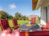 Zum Verweilen und mit Blick auf die unverbaute Natur lädt eine großzügige Terrasse mit Gartenmöbeln, Sonnenschirm ein.
