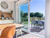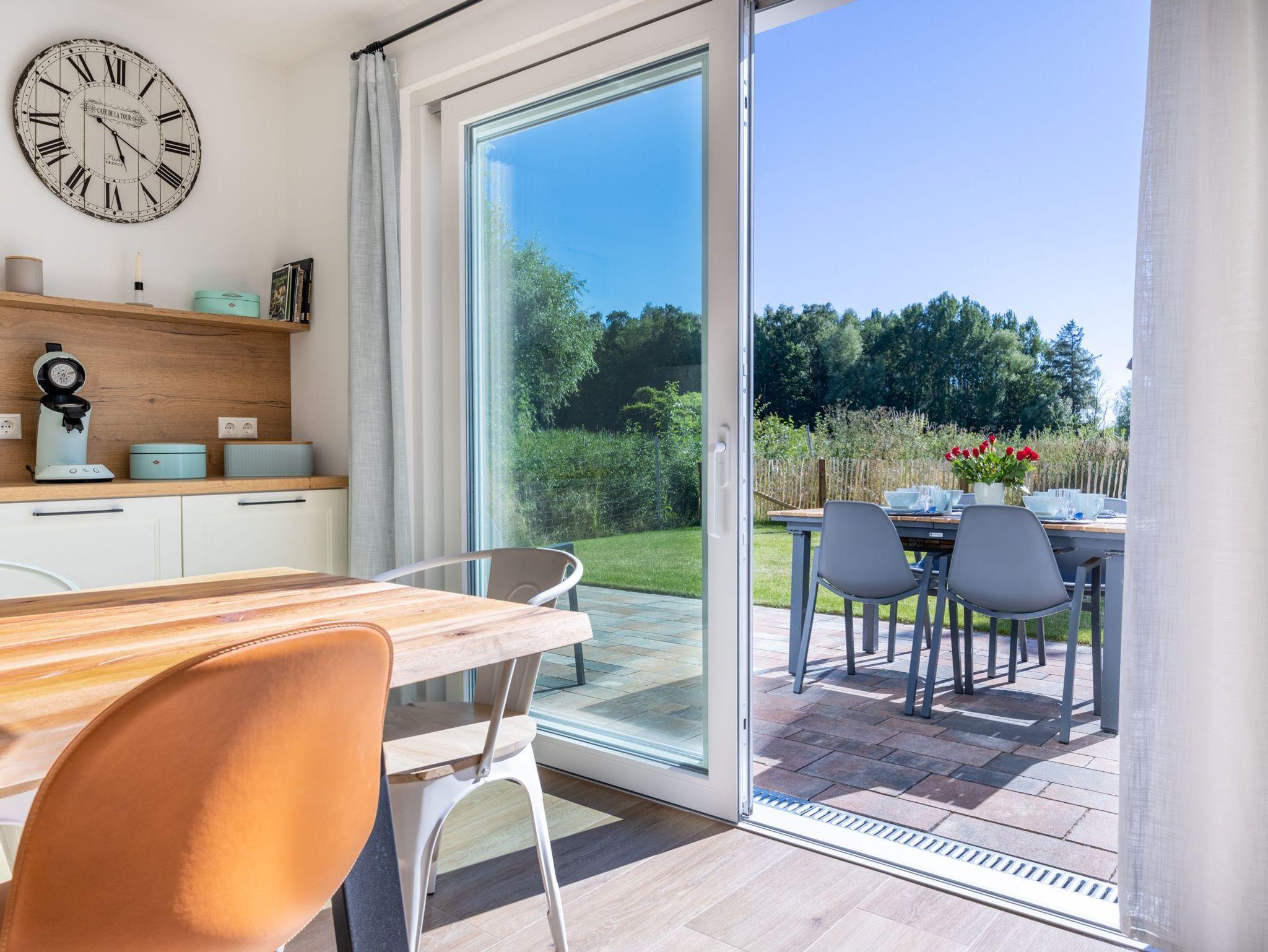 Weitläufiger Flur zum Ankommen, großzügiger Wohn- Essbereich mit gemütlicher Sofaecke und Kamin sowie Smart Magenta TV. Die Küche verfügt über einen großen Esstisch für 6 Personen und eine umfangreiche Ausstattung mit Geschirrspüler, Backofen, Cerankochfeld, Mikrowelle, Wasserkocher Kaffeemaschine, Eierkocher, Waffeleisen, Rührgerät und seit neuestem auch mit Popcornmaschine. Aus der Küche gelangt man auf 2 Terrassenbereiche und genießt einen herrlichen Blick in das angrenzende Wald- und Naturschutzgebiet.