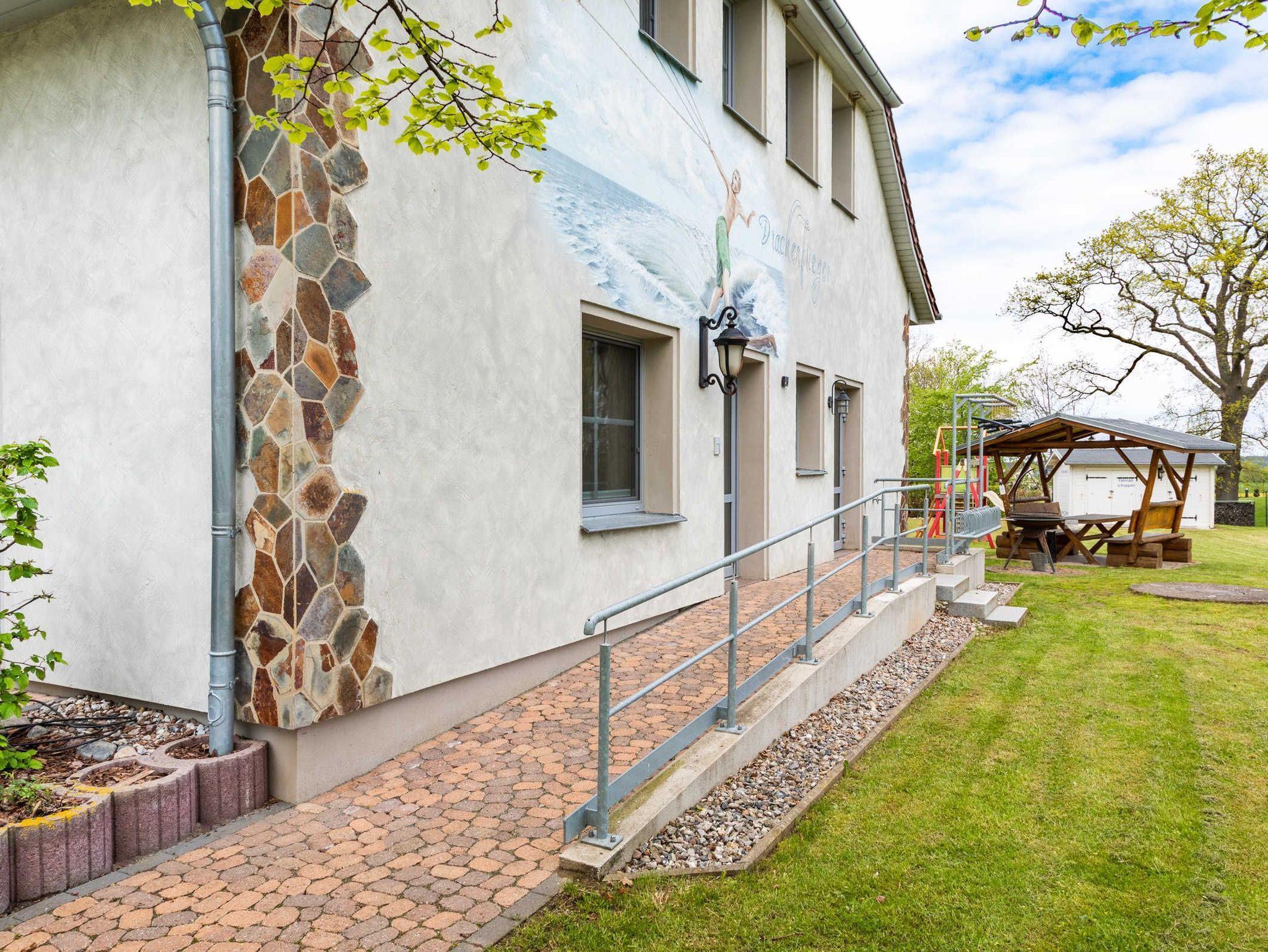 Die großzügige und ebenerdige Ferienwohnung Dorothea befindet sich im Ergeschoss des Ostseeferienhauses Drachenflieger. Die Ferienwohnung verfügt über ein separtes Schlafzimmer mit Doppelbett und Kleiderschrank, einen Wohn- Essbereich mit umfangreich ausgestatteter Küchenzeile (Kühlschrank mit Gefrierfach, 4- Platten- Herd, Backofen, Kaffeemaschine, Wasserkocher, Toaster) sowie einen Essbereich und Sitzecke mit ausziehbarer bequemer Schlafcouch. Vom Wohnbereich gelangen Sie auf die eigene angeschlossene Terrasse. Bad mit Dusche und WC.