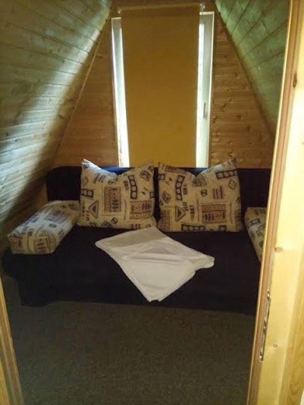 Im Obergeschoss ist ein Zimmer mit 2 Einzelbetten und einer Couch welche Umgeklappt für 2 Personen Platz zum schlafen hat.