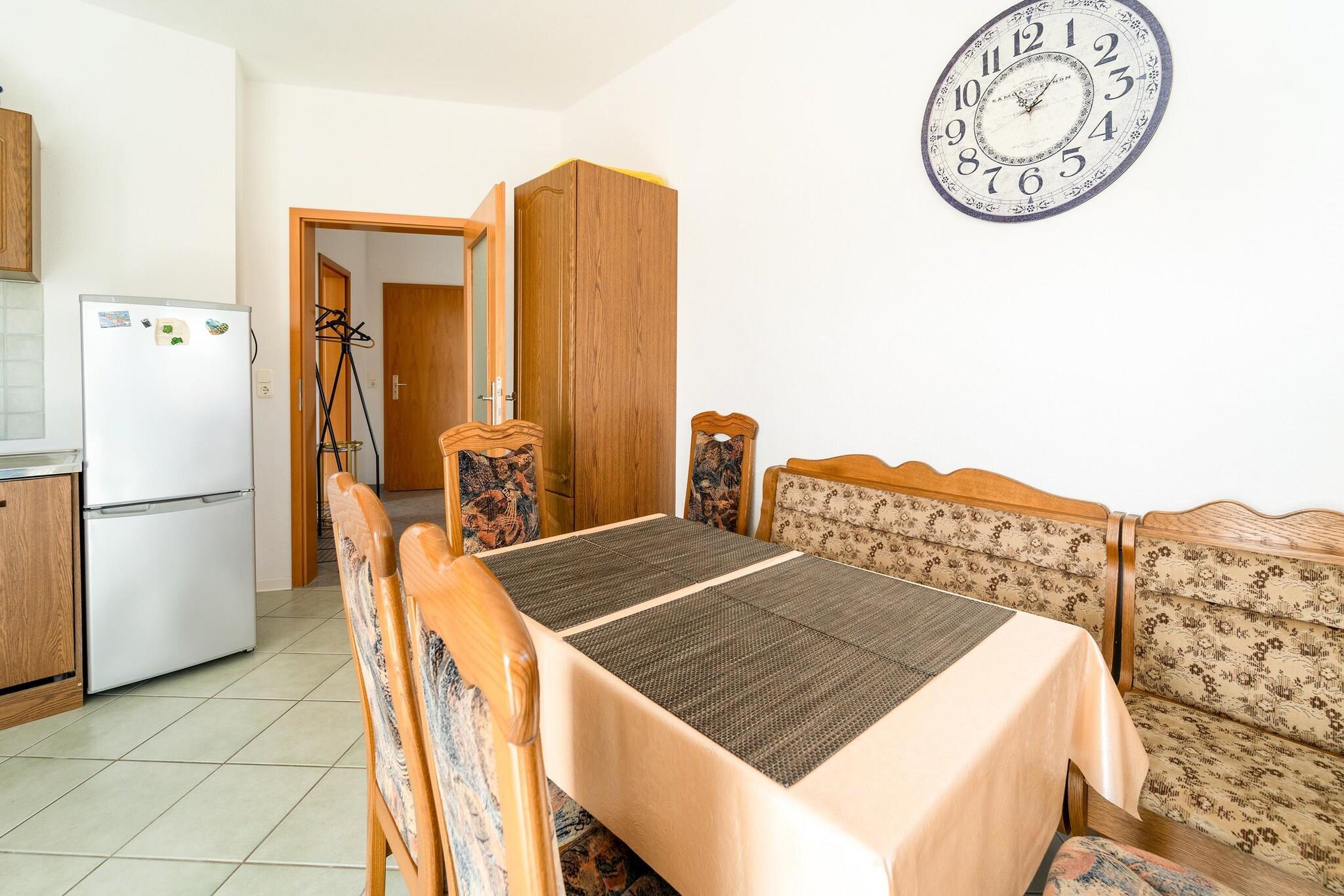 Entdecken Sie Komfort und Charme in dieser Petersberg-Wohnung im ersten Stock – ideal für kleine Familien. Das gemütliche Wohnzimmer mit Schlafsofa und Fernseher lädt zum Entspannen ein, während die gut ausgestattete Küche mit modernen Geräten wie Kaffeemaschine, Backofen und Geschirrspüler ausgestattet ist. Die Schlafgelegenheiten umfassen ein Doppelbett im Hauptschlafzimmer und ein Kinderbett für erholsame Nächte. Umgeben von malerischer Natur bietet die Gegend Wander- und Radwege, einen ruhigen Teich und einen erlebnisreichen Ausflug nach Fulda. Familien können den privaten Garten sowie kulturelle Sehenswürdigkeiten und lokale Veranstaltungen genießen. Ein Balkon sorgt für frische Luft und eine herrliche Aussicht. Das Badezimmer verfügt über eine Dusche und eine Badewanne sowie einen Hochstuhl für kleine Gäste. Gartenmöbel und ein saisonaler Grill runden das Angebot ab. Parkplätze und ein Schuppen sorgen für zusätzlichen Komfort. Bitte beachten Sie: Grillen ist von Mai bis September nicht gestattet.