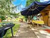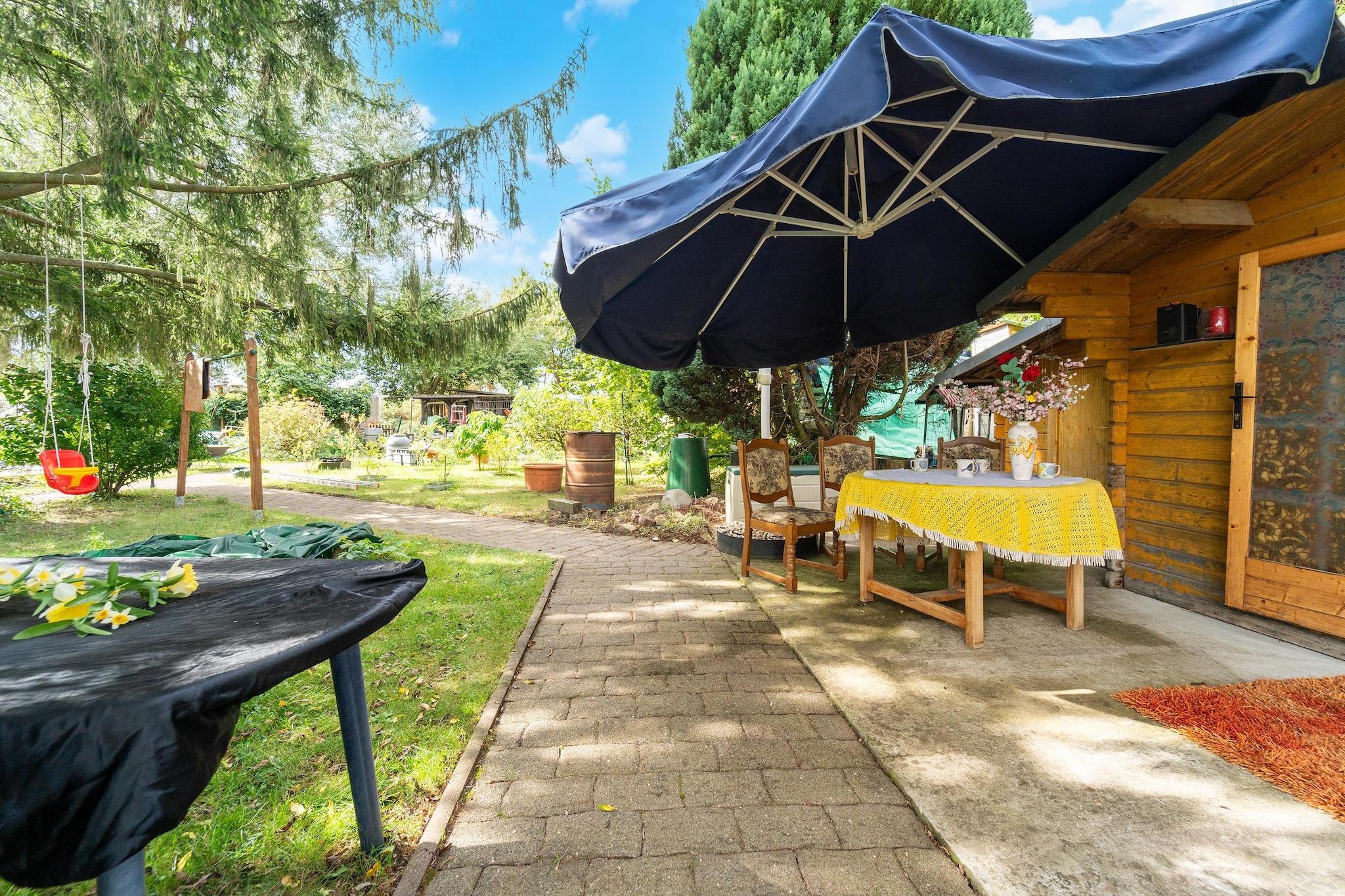 In der 1. Etage: (Wohnzimmer(Schlafcouch 1 Pers., TV, Sitzecke), Küche(Esstisch, Wasserkocher, Kochherd, Dunstabzugshaube, Kaffeemaschine, Backofen, Mikrowelle, Spülmaschine, Kühlschrank), Schlafzimmer(Doppelbett, TV), Kinderzimmer(Kinderbett), Badezimmer(Badewanne mit Dusche, Waschbecken, Toilette), Balkon, Hochstuhl) Garten, Gartenmöbel, Grill, Parkplatz, Teich, Gartenhaus