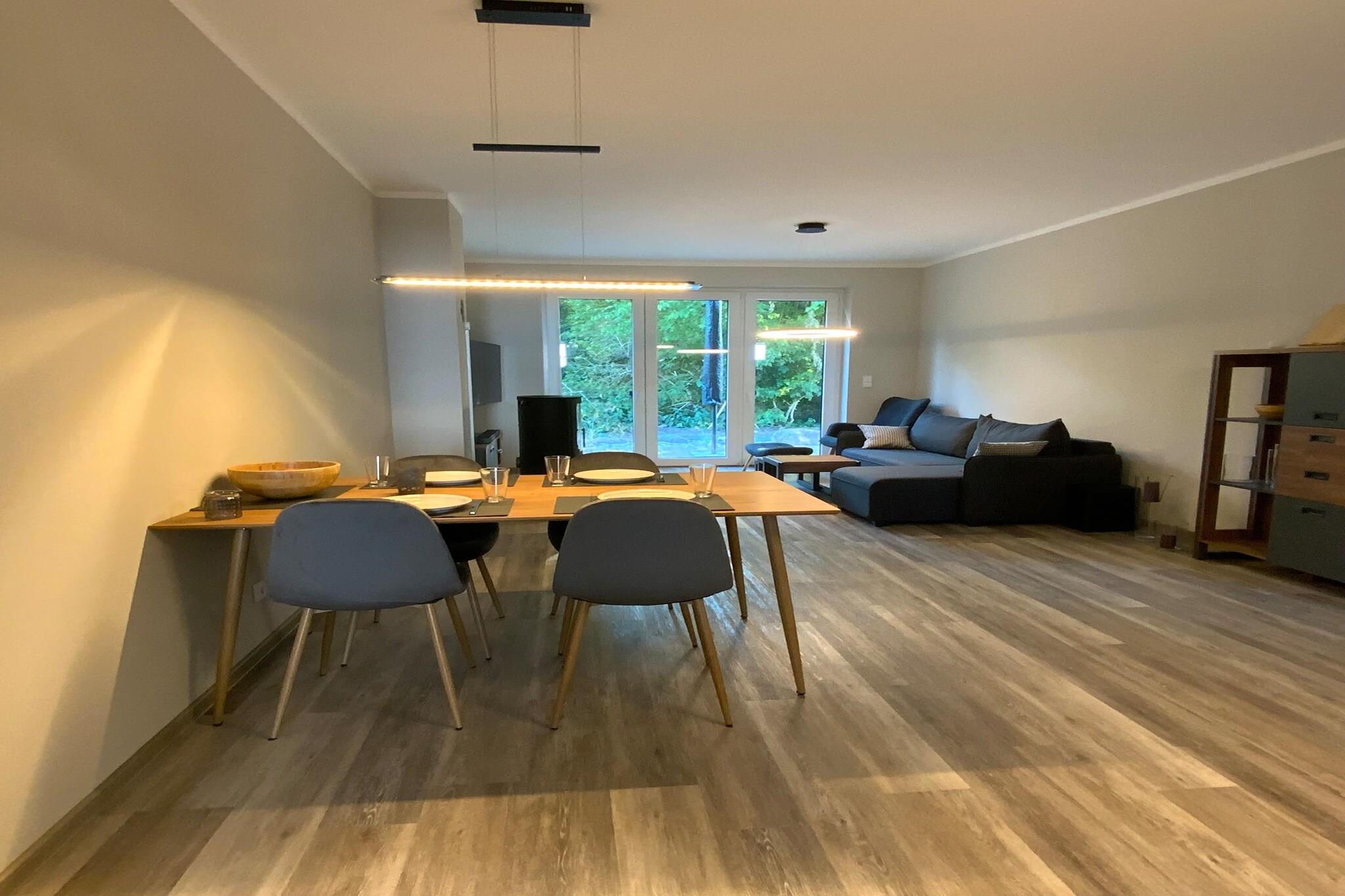 Modernes, barrierefreies Appartement auf Fehmarn mit Kamin, Terrasse und WLAN, ideal für entspannte Urlaubstage.