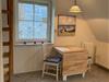 Die Ferienwohnung 5 erstreckt sich über zwei Etagen und bietet einen südlich ausgerichteten Balkon mit Blick über die Felder. Im ersten Obergeschoss befindet sich das lichtdurchflutete Wohn-Esszimmer, das zum Entspannen einlädt. Angrenzend findet sich die gut ausgestattete Küche sowie ein Duschbad mit WC. Eine steile Treppe führt in den Spitzboden, der als Schlafbereich mit einem Doppelbett gestaltet ist und ideal für Kinder geeignet ist. Die Wohnung gehört zum linken Haus des Grundstücks. Die hochwertigen Räume und die durchdachte Ausstattung sorgen für ein angenehmes Wohngefühl während des Aufenthalts.