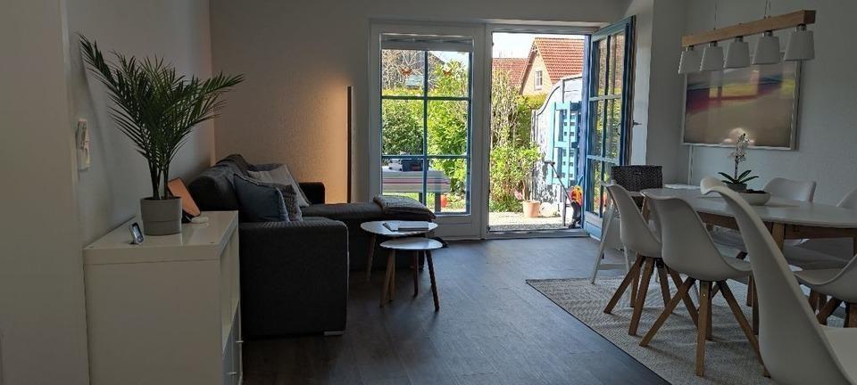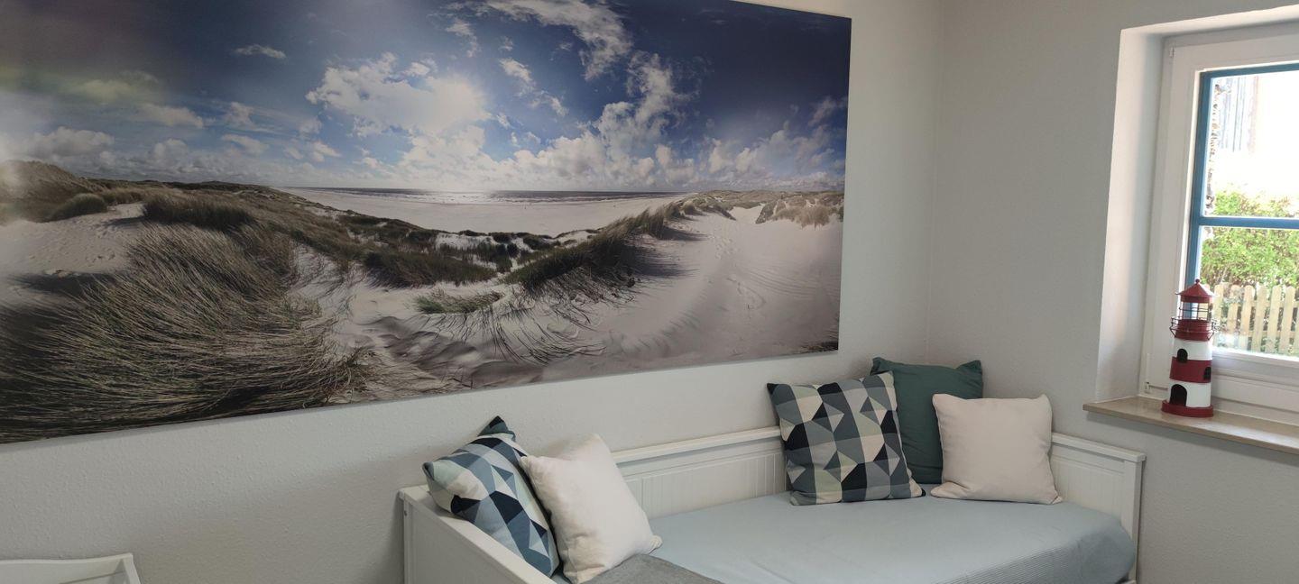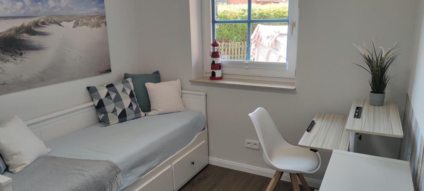 Sie finden diese gemütliche und mit viel Liebe zum Detail modern eingerichtete Ferienwohnung im Inselwesten. Diese Wohnung besticht durch Ihre Farbabstimmung und hat dadurch das gewisse Flair. Sie ist ideal für Familien mit 2 Kindern und hat zusätzlich ein Bett für Kleinkinder (bis 5 Jahre) oder für 4 Erwachsene. Im Elternschlafzimmer befindet sich ein hochwertiges Doppelbett (160x200cm) mit durchgehender Matratze und ein großer Kleiderschrank. Im Kinderzimmer steht Ihnen eine auf 160x200cm ausziehbare Schlafcouch zur Verfügung (Matratzen je 80 cm).