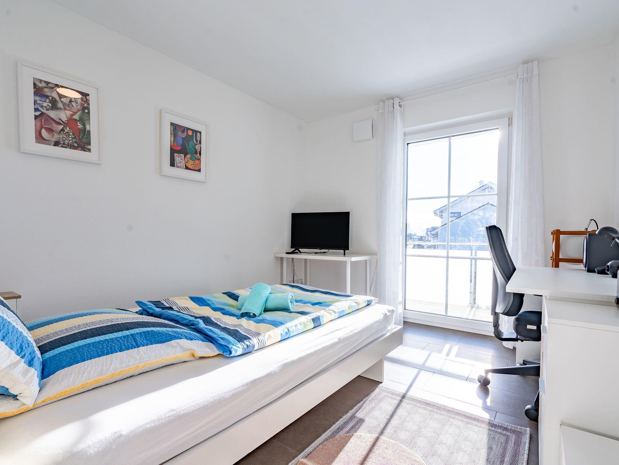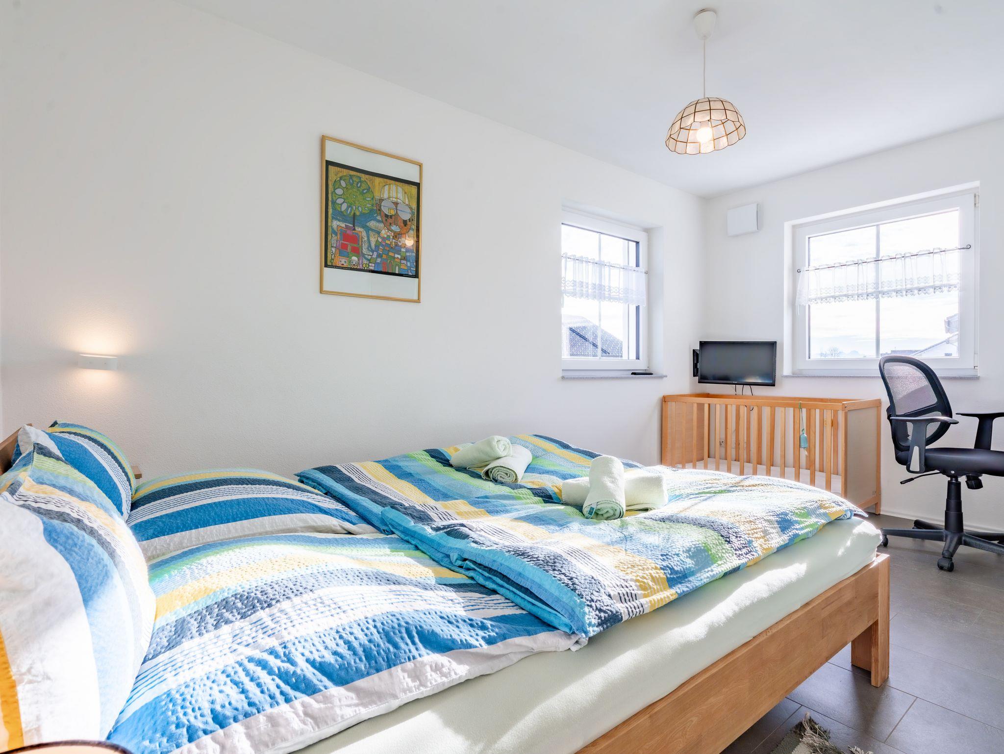 Unsere neue, voll ausgestattete, große, moderne Ferienwohnung befindet sich im ruhigen Neubaugebiet, im ersten Obergeschoss direkt in Pfaffing. Sie ist optimal für Feriengäste mit und ohne Kinder, Messegäste oder auch für Gäste, die sich für einen längeren Aufenthalt entscheiden. Sie hat eine Wohnfläche, inkl. Balkon von 108qm und ist bis zu 6 Personen bestens geeignet. Im neuen angelegten Garten gibt es Möglichkeiten zum Sonnen, Grillen, Spielen usw. WLAN ist kostenlos dabei. Herrlicher Blick auf den Wendelstein mit Alpenpanorama bei gutem Wetter. Ein wunderschöner Kinderspielplatz ist von unserem Haus nur 2 Minuten entfernt. Unser Swimmingpool ist per Auto in 2 Min. zu erreichen (zu Fuß in 5 Min.).