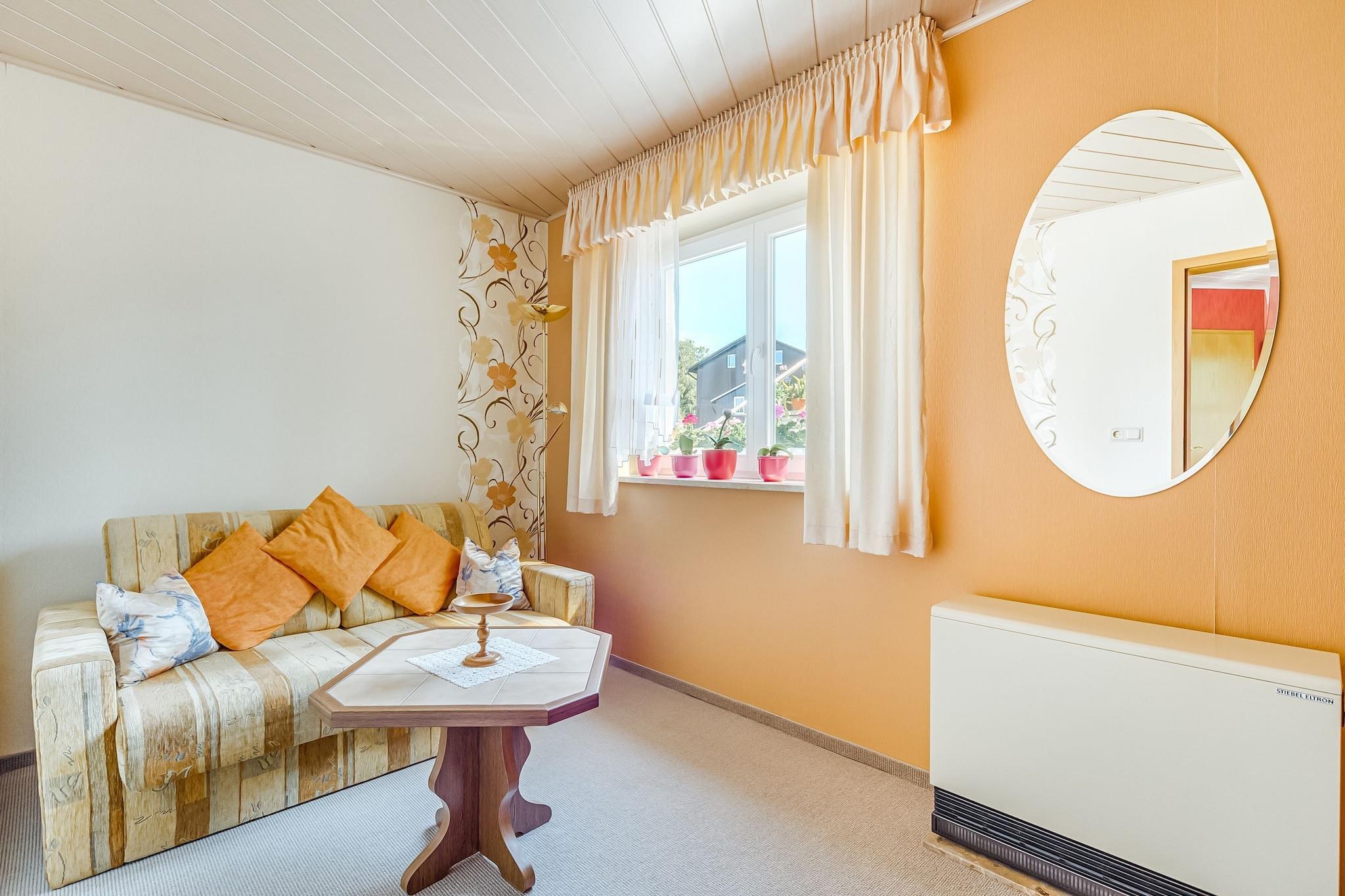Mitten im Erzgebirge gelegen, bietet diese 1-Zimmer-Wohnung in Dörnthal Zentralheizung, eine private Terrasse und einen Grillplatz. Sie ist ideal für ein Paar oder eine kleine zweiköpfige Familie, die ihren Urlaub genießen möchten. Berge, Täler und Kiefernwälder bilden eine wunderschöne Landschaft. Genießen Sie diese beim Radfahren und Wandern. Es gibt zahlreiche Berge und Burgen zu entdecken. Besuchen Sie auch Dresden (50 km), das Spielzeugdorf Seiffen (20 km) und Freiberg (20 km). Verbringen Sie eine tolle Zeit im Erlebnis- und Thermalbad (15–40 km). Wenn Sie auswärts essen möchten, finden Sie Restaurants in der Nähe (200 m). Der Supermarkt (1 km) bietet alle Dinge des täglichen Bedarfs. Mit Zentralheizung, gemütlichem Wohnzimmer und moderner Küche wohnen Sie hier komfortabel. Genießen Sie den Grillspaß auf der Terrasse. Entspannen Sie im möblierten Garten und bewundern Sie die Natur. Parkplätze sind ebenfalls vorhanden. Der Flughafen ist 60 km entfernt. Öffentliche Verkehrsmittel sind 100 m entfernt und der Bahnhof ist 20 km entfernt.