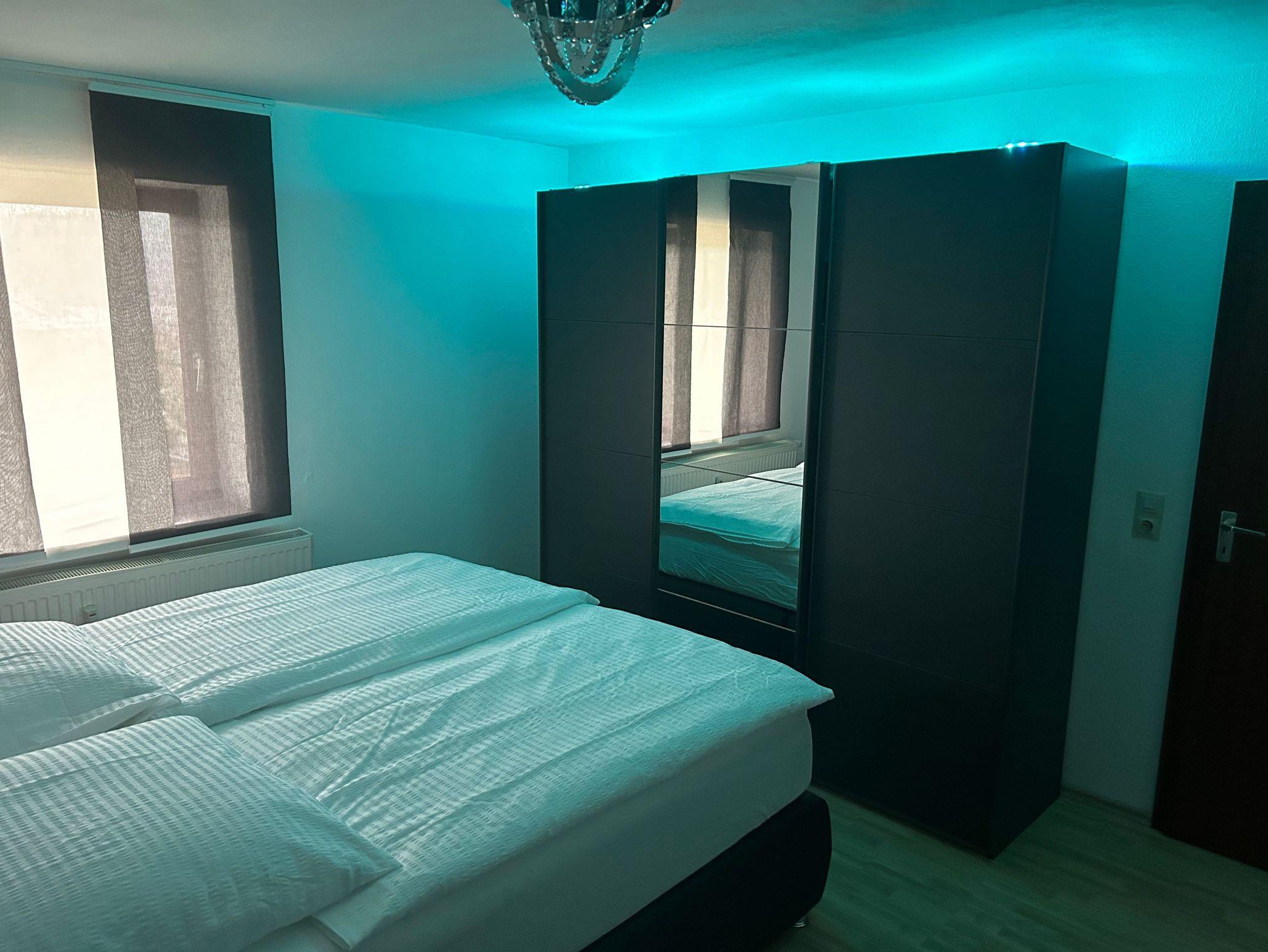 - Schlafzimmer mit einem Doppelbett und einem Einzelbett, Im Wohnzimmer kann bei Unterbringung von insgesamt vier Personen ein weiteres Doppelbett zur Verfügung gestellt werden, maximale Unterbringung von fünf Personen (inklusive Kleinkindern) ist möglich, die 5. Person kostet einen Aufpreis von 10.-€/Nacht