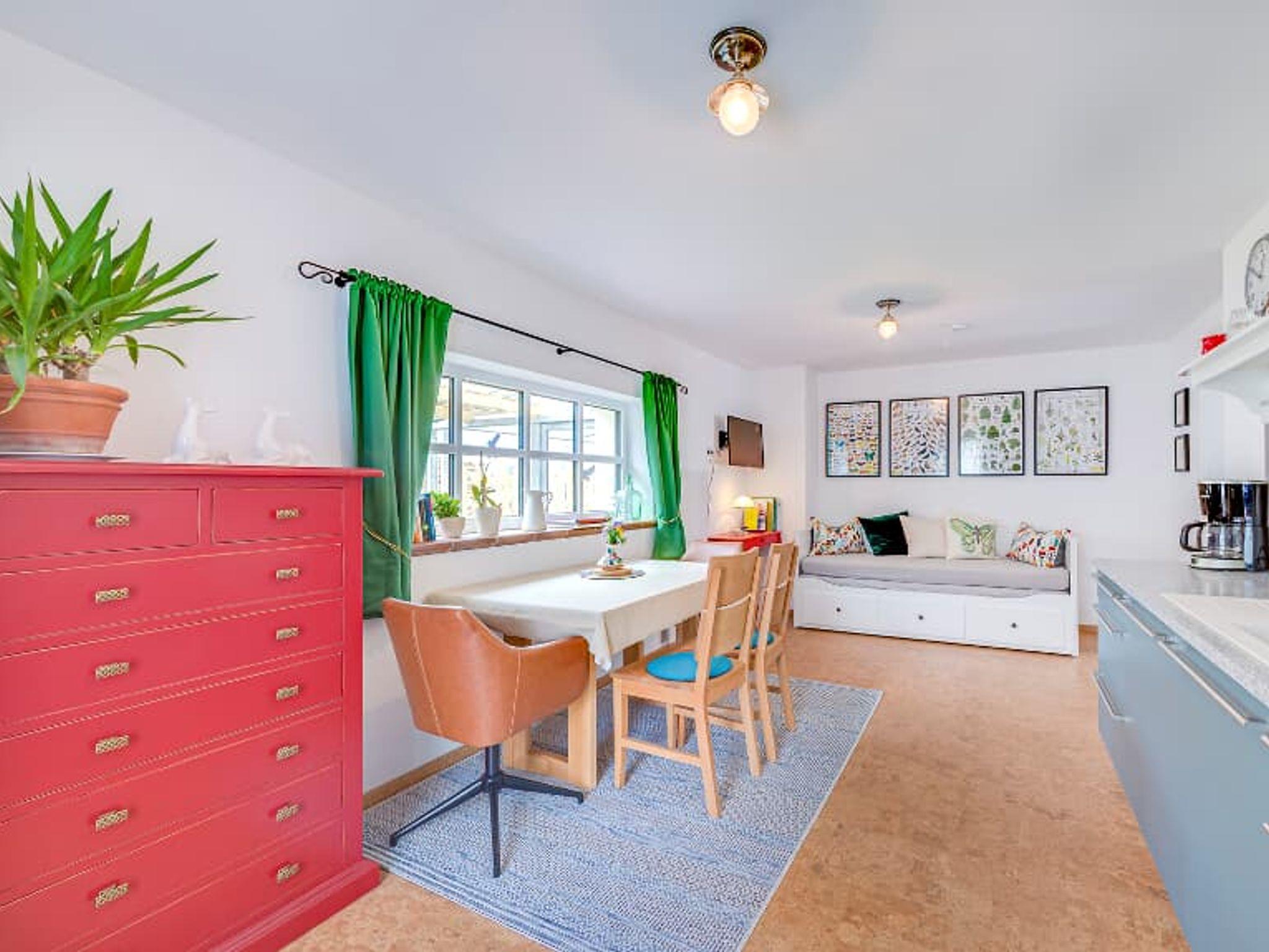 Treten Sie ein und fühlen Sie sich wohl. Die hochwertige Küche ist komplett ausgestattet. Im Wohn / Essbereich befindet sich ein Tagesbett, dass sich ideal als Schlafgelegenheit umfunktionienen lässt. Im angrenzenden Schlafzimmer erwartet Sie ein 1,80 m massives Holzbett. Ein absoluter Hingucker ist der eingebaute, hochwertige Kachelofen. Das Bad wartet mit extra grosser Dusche auf. Eine Waschmaschine steht hier nur für Sie zur Verfügung.