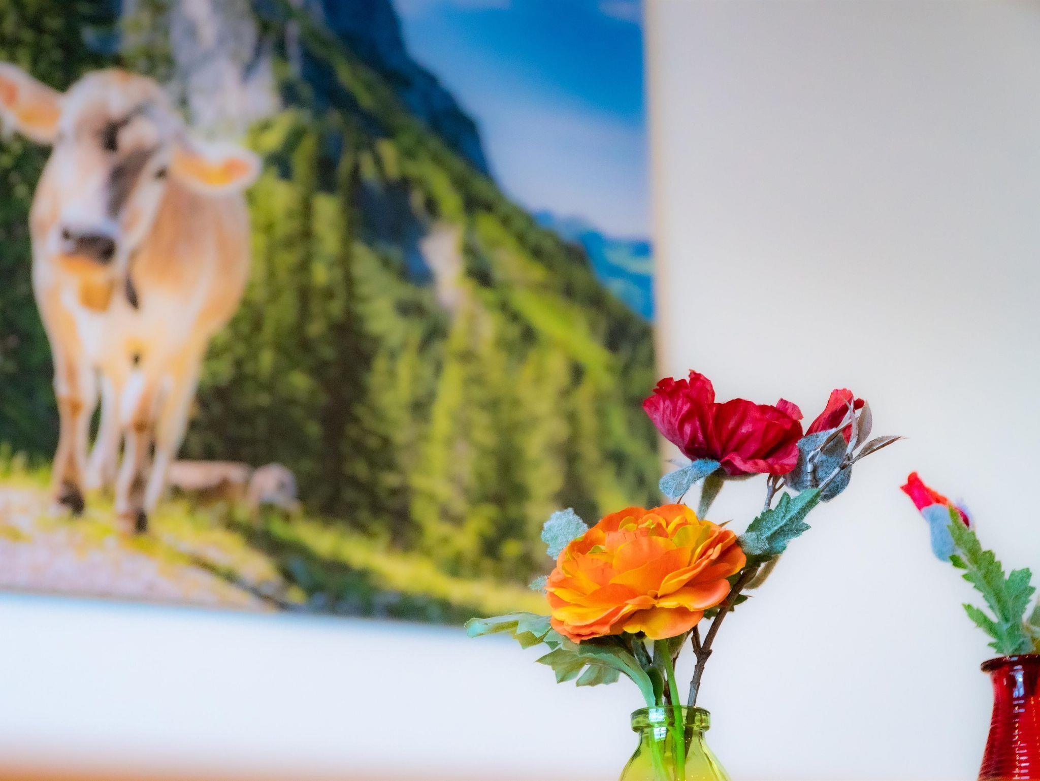 Unsere Ferienwohnung Aggenstein bietet Platz für 1 bis 4 Personen und befindet sich im 2. Stock. In der Wohnküche finden Sie eine voll ausgestatte Küchenzeile mit Spülmaschine inkl. Reinigungstabs, Kühlschrank mit Gefrierfach, Herd, Backofen, Wasserkocher, Eierkocher, Toaster, Kaffeemaschine und natürlich sind ausreichend Geschirr, Gläser, Besteck, Töpfe und Pfannen vorhanden. Außerdem lädt eine gemütliche Couch mit Schlaffunktion zum Verweilen ein. Vom schönen Esstisch aus haben Sie einen herrlichen Blick auf die Pfrontner Berge. Im Schlafzimmer wartet ein wohlriechendes Zirbenbett auf Sie. Im Bad finden Sie Föhn, Kosmetikspiegel, Handseife und WC-Papier vor. Im Sommer können Sie entspannte Grillabende in unserer Gartenhütte verbringen. Bitte beachten Sie, dass keine Haustiere erlaubt sind. Das WLAN und den Parkplatz vor dem Haus können Sie kostenfrei nutzen.