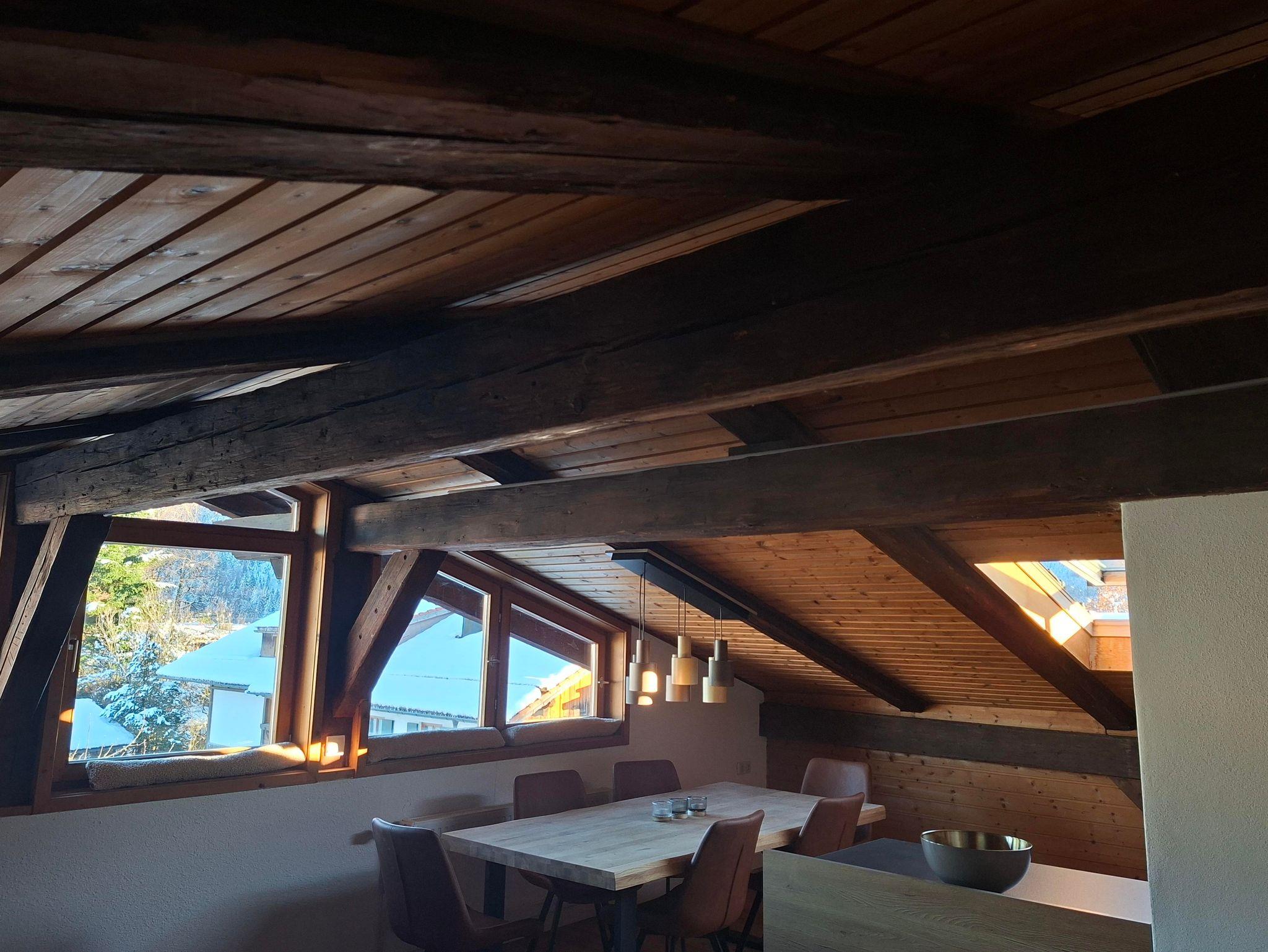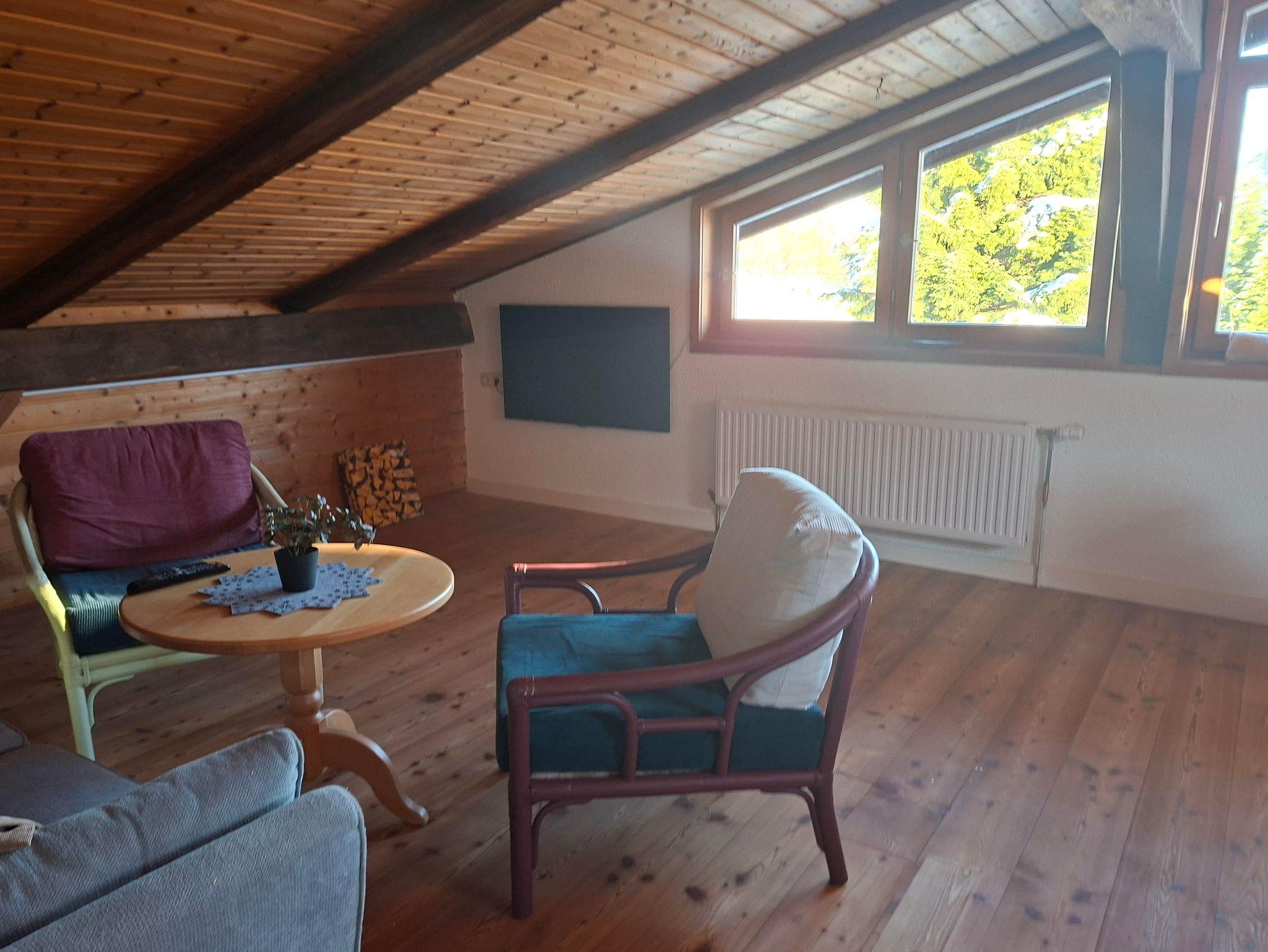 Willkommen in unserer gemütlichen Ferienwohnung unter dem Dach im zweiten Stock, die einen idealen Rückzugsort für einen entspannten Urlaub bietet. Die Wohnung verfügt über freundlich eingerichtete Räume und befindet sich in einem Bauernhaus mit einer authentischen Holzbalkenstruktur.