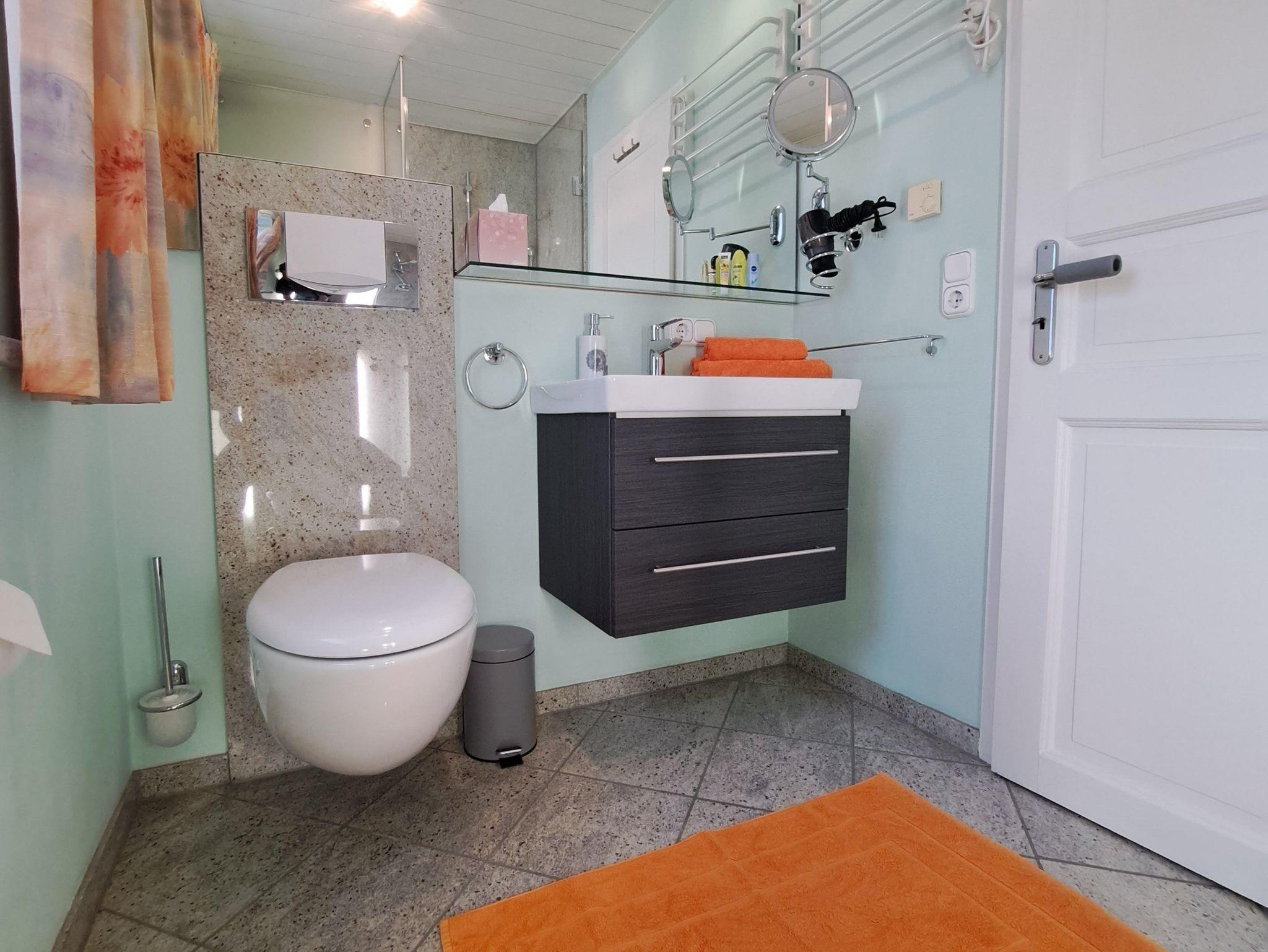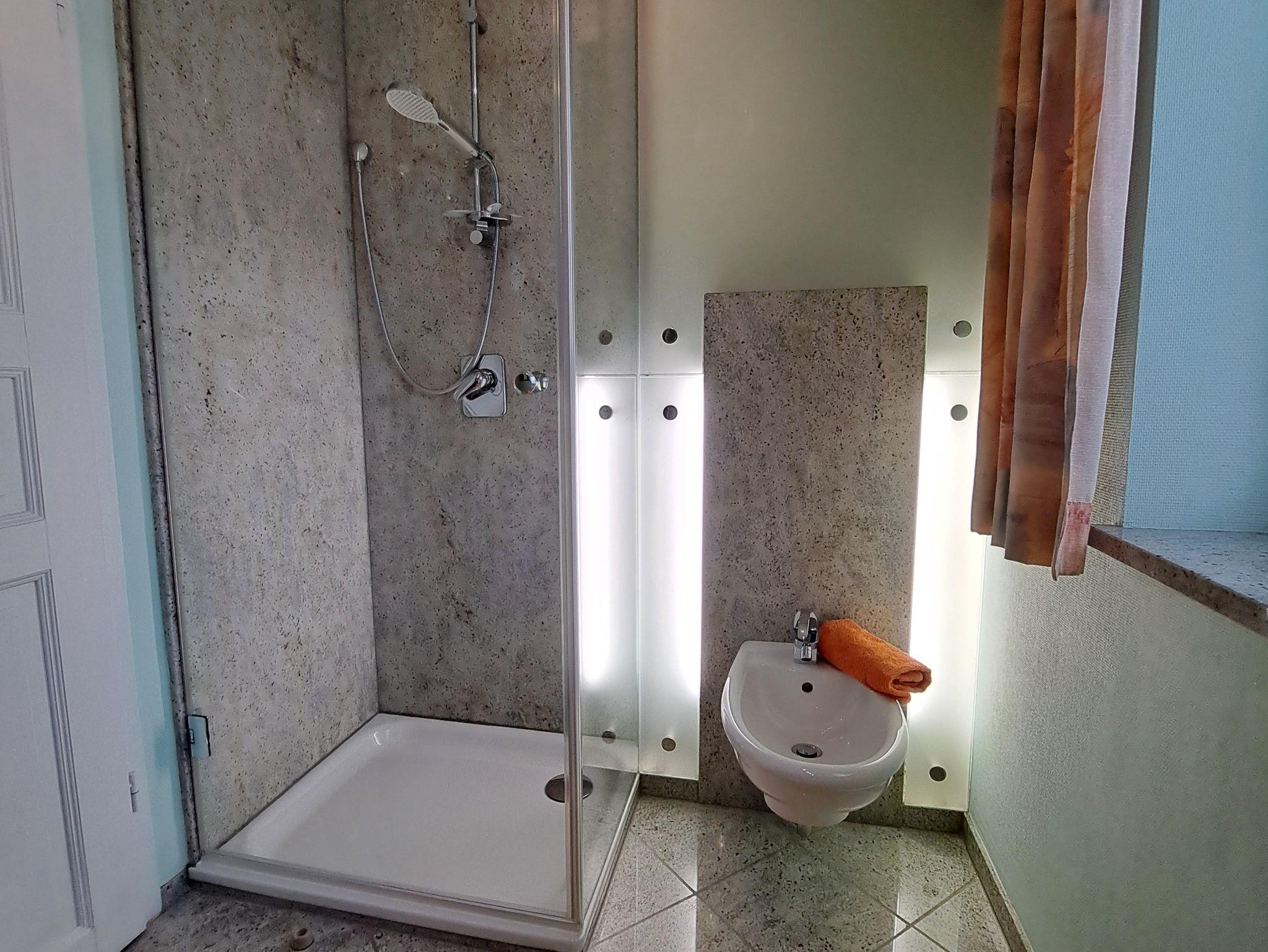 Bad: Dusche, WC, Bidet, Handtuchwärmer, Kosmetikspiegel, Handtücher