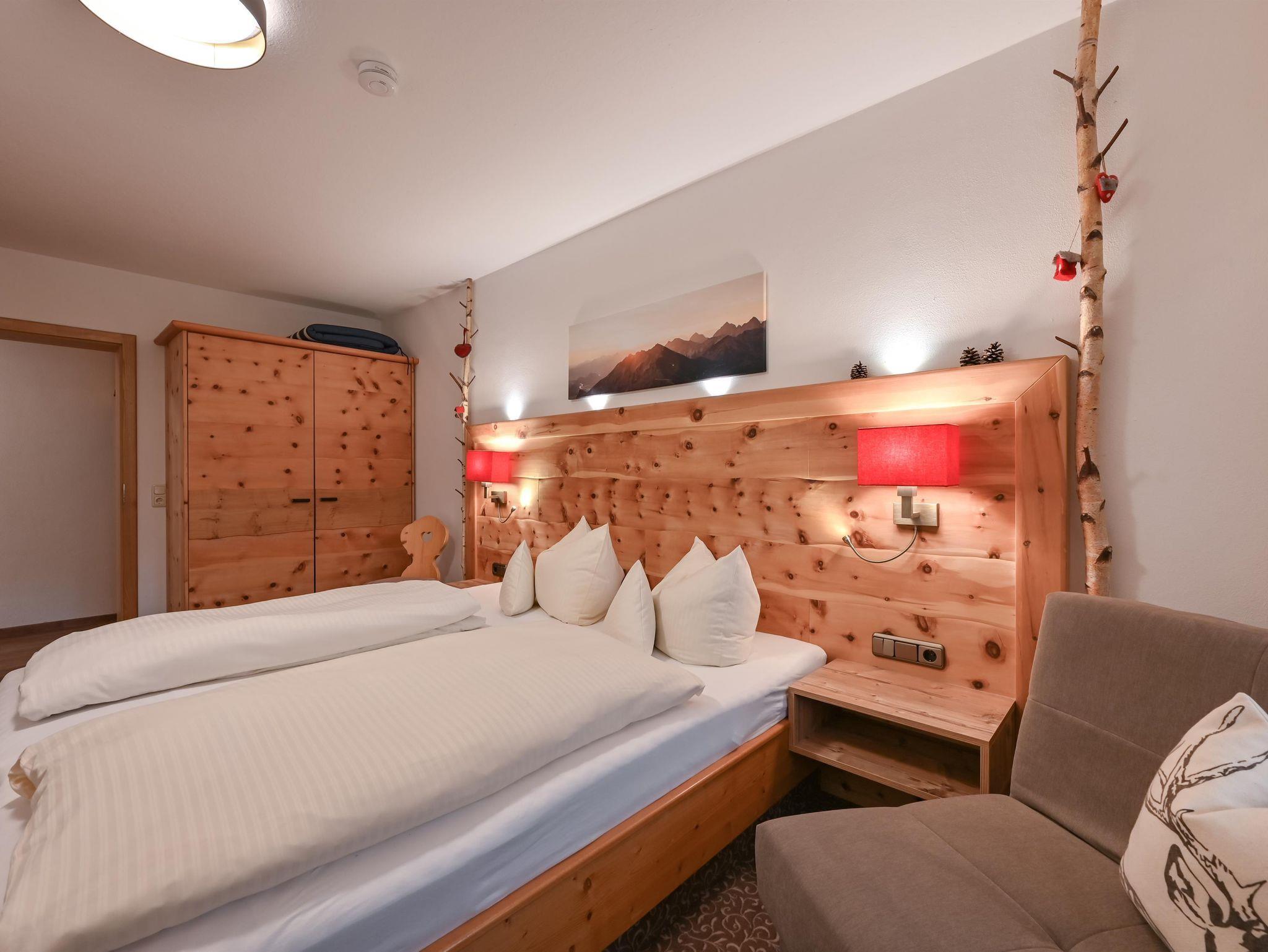 Gemütliche Ferienwohnung für 2 Personen (Standardbelegung) mit eigenem Badezimmer. Das Schlaf- und Wohnzimmer ist mit liebevollen Details gestaltet und räumlich getrennt (Möglichkeit eines Extrabettes mit Schlafcouch im Wohnzimmer). Das Zirbenschlafzimmer sorgt für ein gutes Raumklima und erholsamen Schlaf. Die voll ausgestattete Küchenzeile im Wohnbereich bietet eine Geschirrspülmaschine, Mikrowelle, Cerankochfeld und ist auch sonst mit allem ausgestattet, was Sie zum Kochen brauchen. Handtüher und Bettwäsche sind selbstverständlich inklusive. Der Flatscreen kann für einen gemütlichen Fernsehabend genutzt werden und das kostenfreie WLAN steht im gesamtn Haus zur Verfügung.