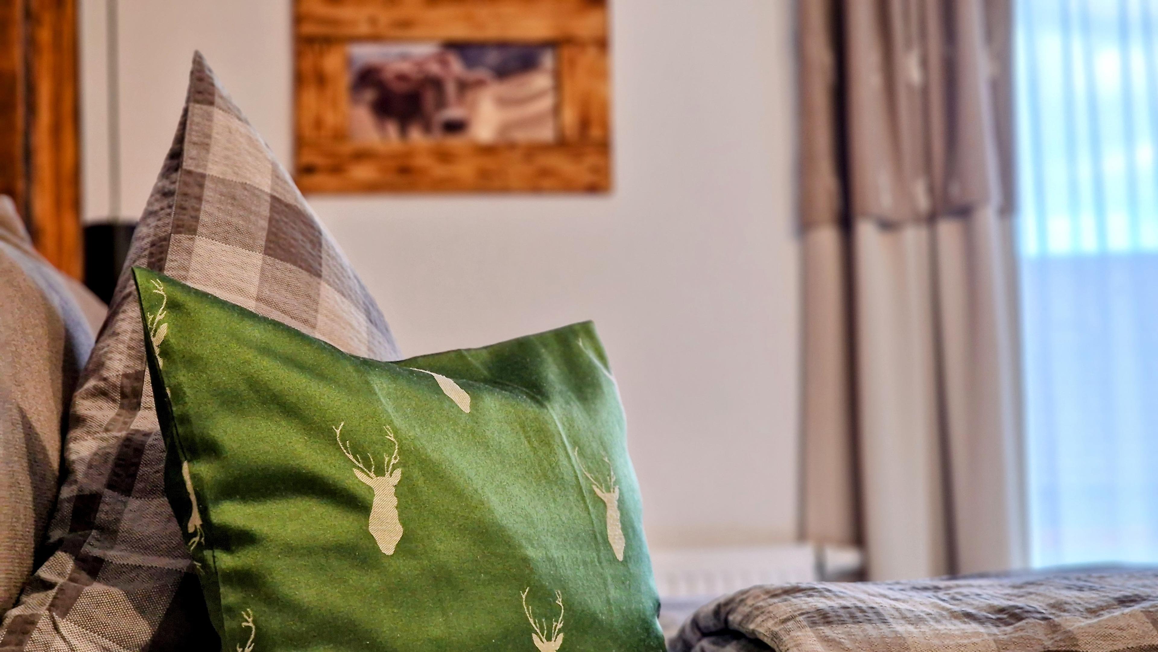 Zur Wohnung gehören ein Schlafzimmer (auf Wunsch mit einem Babybett), ein Wohnraum mit Küche, einem großen Essbereich, einem Smart Flachbild-TV und entweder einem Schlafsofa oder einem Zustellbett. Ein kleines Badezimmer, ein separates WC, ein großer Ost-Balkon mit Bergblick sowie kostenloses schnelles WLAN und eine Ski- und Fahrradgarage sind ebenfalls vorhanden. Vom Balkon aus können Sie den Blick auf die Pfrontener Berge genießen. Die Wohnung erwartet Sie im modernen Stil, mit vielen Details aus dem schönen Allgäu.
