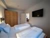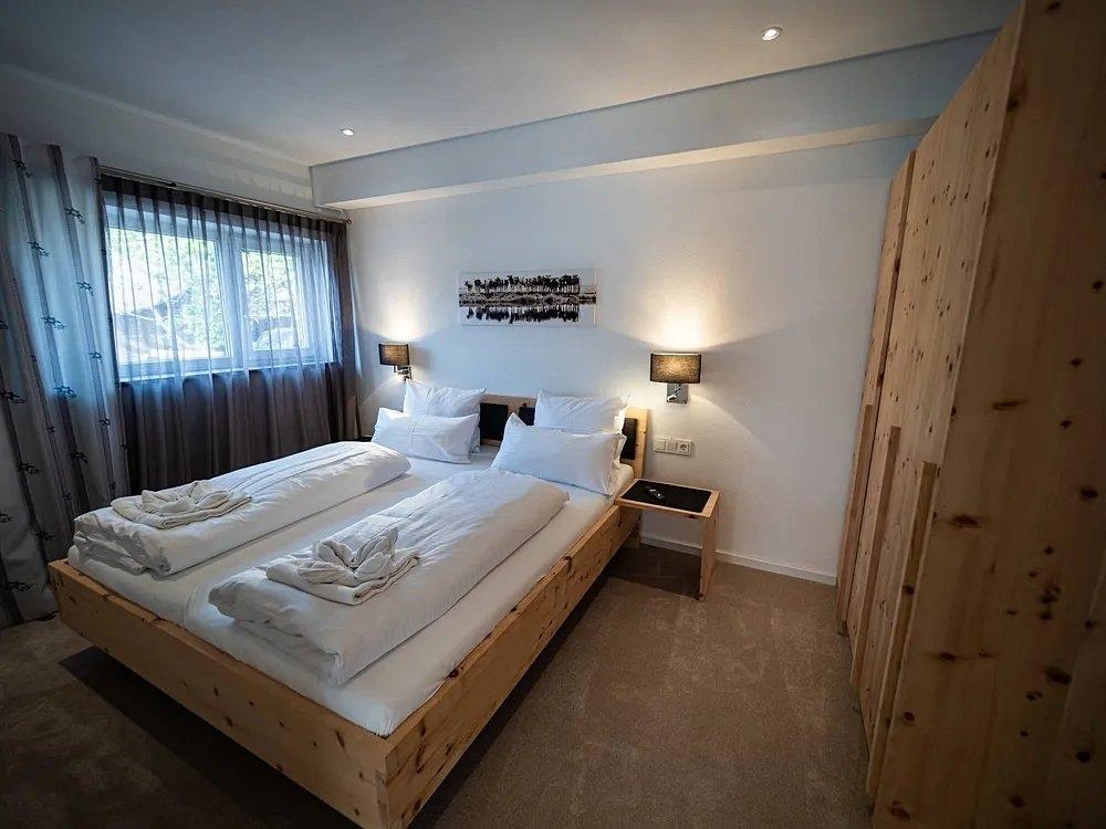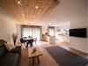 60 qm Zweizimmerwohnung im Erdgeschoss für vier Personen mit einem Schlafzimmer, ausgestattet mit einem Zirbenholzbett. Im Wohnzimmer steht eine vollwertige Schlafcouch mit Matratze bereit.