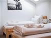Dreizimmerwohnung im Obergeschoss mit zwei Schlafzimmern, ein Schlafzimmer mit Zirbenholzbetten, ein Schlafzimmer mit einem Doppelbett bzw. zwei Einzelbetten, ebenso aus Zirbenholz für Kinder und einem Waschbecken mit Spiegel. Die Königscard ist für alle Gäste im Preis enthalten. Mit ihr können Sie 200 attraktive, kostenlose Angebote in der Region nutzen.