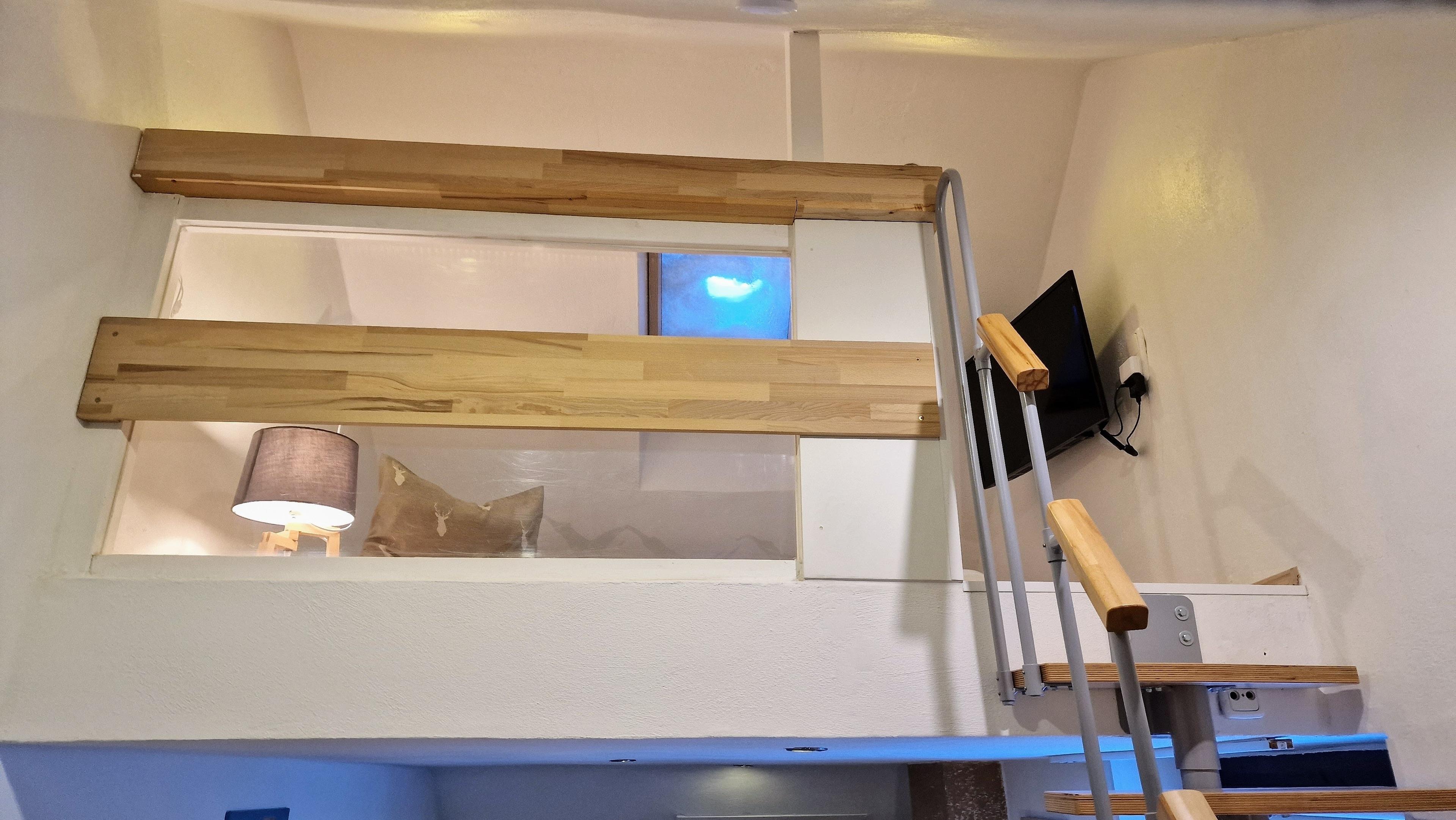 Genießen Sie eine sensationelle Aussicht! Als besondere und einzigartige zusätzliche Schlafmöglichkeit für Kinder ab 12 oder Jugendliche gibt es in der hohen Dachschräge des Wohnbereiches ein kleines Himmelreich für ein Person.