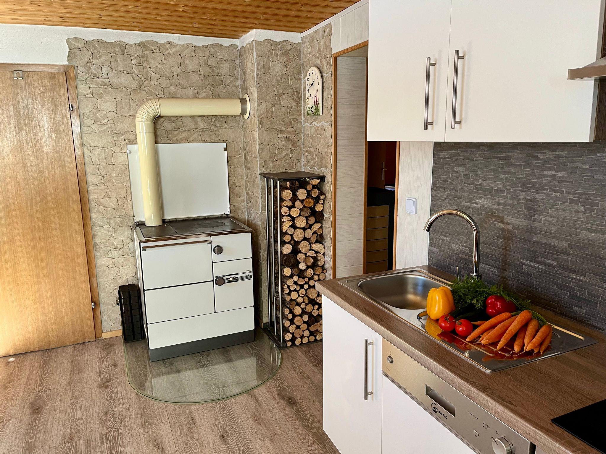 Im Inneren des Ferienhauses erwartet Sie eine einladende Atmosphäre. Die behagliche Ausstattung lädt zum Wohlfühlen ein. Zwei Schlafzimmer bieten ausreichend Platz, eines davon mit einem gemütlichen Doppelbett, Schrank und auf Wunsch einem Zustellbett, das andere mit zwei Einzelbetten. Für 2 Personen steht der Schlafraum mit Doppelbett zur Verfügung. Das Wohnzimmer ist mit einer bequemen Couch inklusive Bettfunktion für zwei weitere Gäste, sowie einem Fernseher ausgestattet. Die Küche überzeugt mit einer Essecke, einem Holzofen, modernen Geräten wie Kühlschrank mit Gefrierfach, Herd mit Ceranfeld und Backofen sowie einer Spülmaschine. Ein Badezimmer mit Badewanne, Duschvorrichtung, Waschmaschine und Föhn sowie ein separates WC runden das Angebot ab. W-Lan und eine elektrische Heizung sorgen dabei für zusätzlichen Komfort.