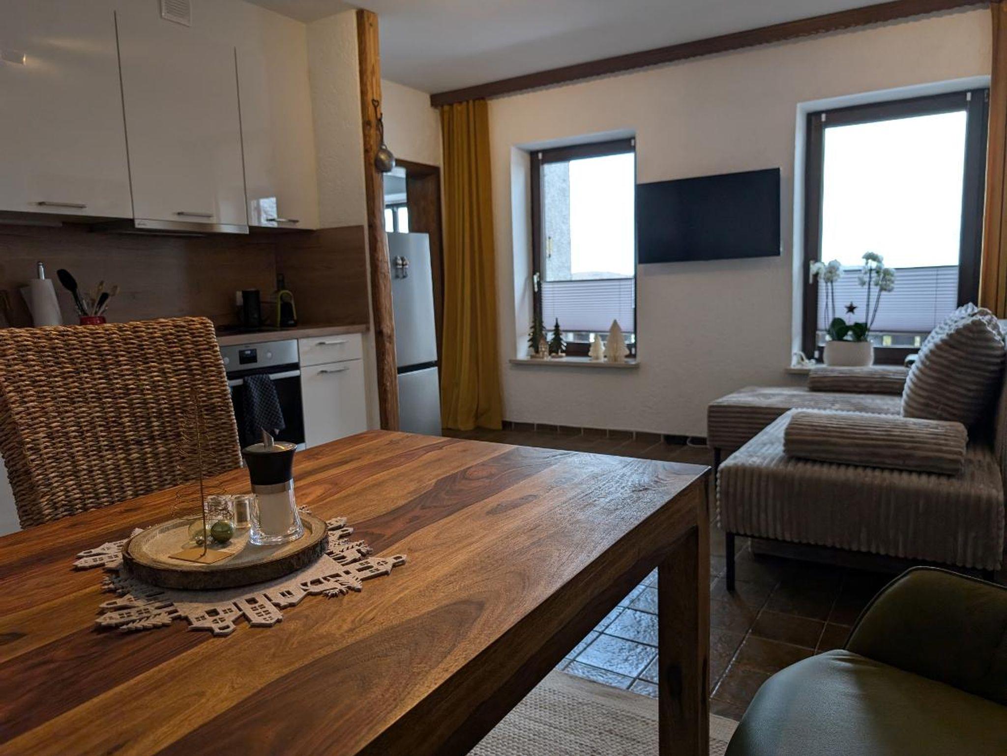 Das Appartement Nr. 8 befindet sich im zweiten Obergeschoss im zentral gelegenen Haus „Ferienwohnungen Almberg“.