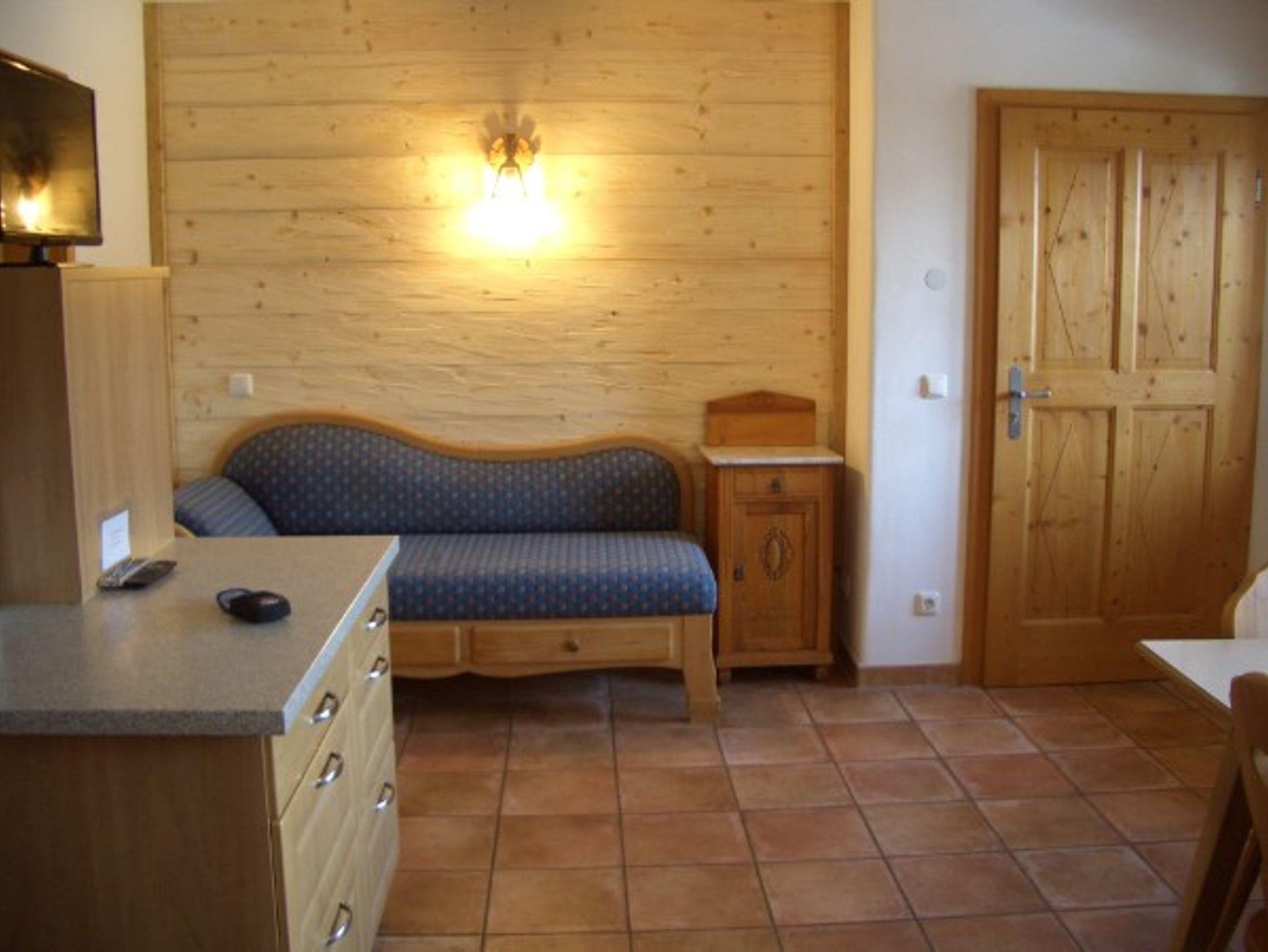 Die Ferienwohnung Salzburg liegt im Erdgeschoss, mit einem geräumigen Wohnraum und separatem Schlafzimmer.