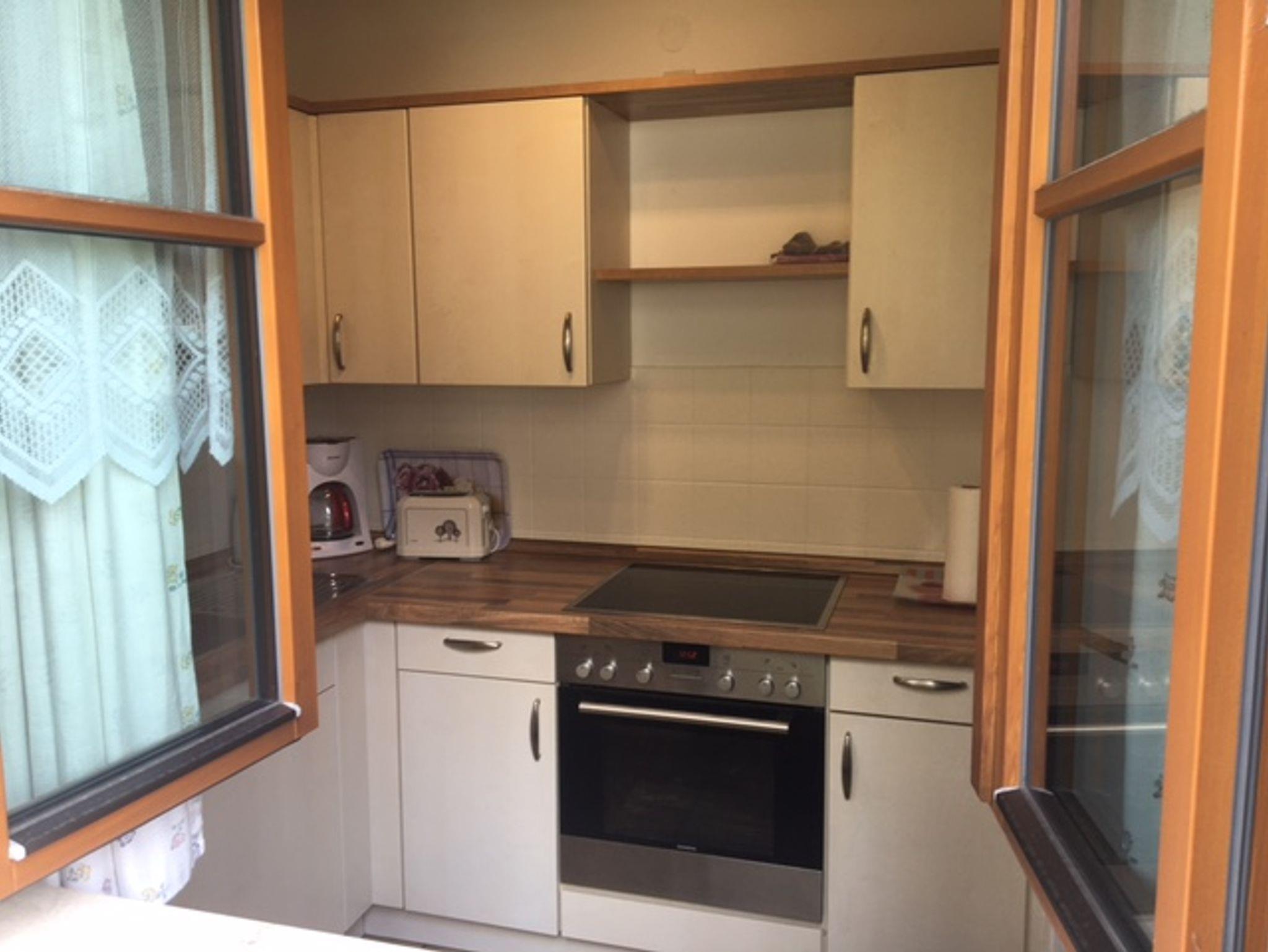 Kleine gemütliche Ferienwohnung 45 m² im Landhausstil für bis 4 Personen, geeignet für 2 bis 3 Erwachsene, oder 2 Erwachsene und 1 bis 2 Kinder ( 3. Kind auf Anfrage). Wohn/Esszimmer mit kleinem Bettfsofa (ausziehbar auf 1,98 m länge, breite 1,10 cm), Schlafzimmer mit Doppelbett(1,80x2,00m) auch als Einzelbetten nutzbar bzw. auseinander stellbar, sowie ein Klappsofa (1,30 x 2,00 m). Das Schlafzimmer ist durch eine Schiebefaltwand abtrennbar zum Wohn/Esszimmer, voll eingerichtete Einbauküche, Eckbank mit Tisch und 2 Stühlen, Flachbild TV, neues Bad mit bodengleicher Dusche (0,80x1,00m), WC.