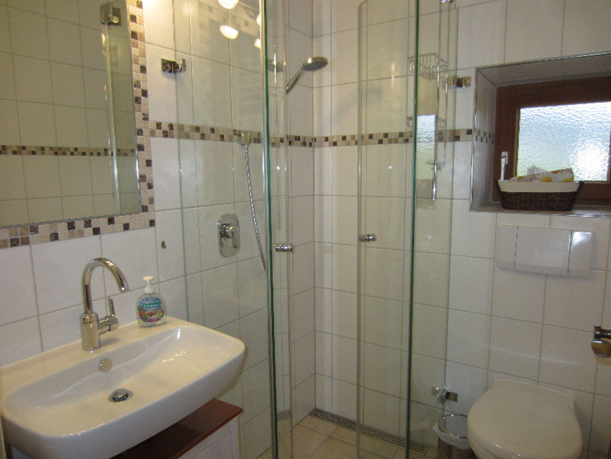 Die Ferienwohnung hat 45 qm² Wohnfläche und ist im ersten Stock des Gästehaus. Sie hat einen Balkon, von dem Sie eine traumhafte Aussicht auf die Berge und ins Tal haben. Da das Haus am Hang steht, ist der Balkon seitlich und vorne, an der Ostseite ist eine kleine Terrasse, auf der Sie wunderbar frühstücken können oder an heißen Tagen nachmittags im Schatten sitzen.
