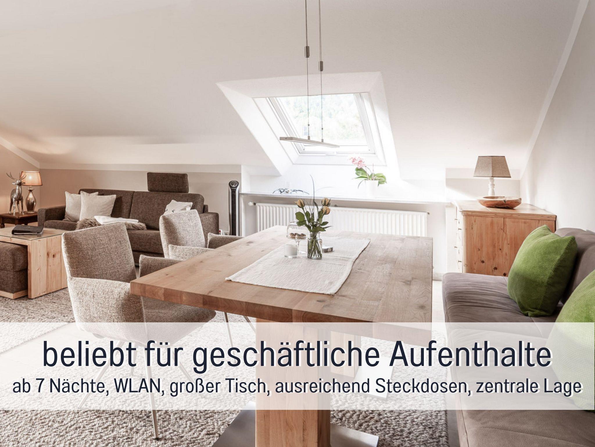 Große 5 Sterne-Ferienwohnung Alpenpanorama mit exklusiver Ausstattung (68 m²) für 2 Personen und herrlichem Blick auf Untersberg, Lattengebirge und Predigtstuhl sowie Schlafzimmer, Küche, Wohnzimmer, Dusche/WC und Balkon.