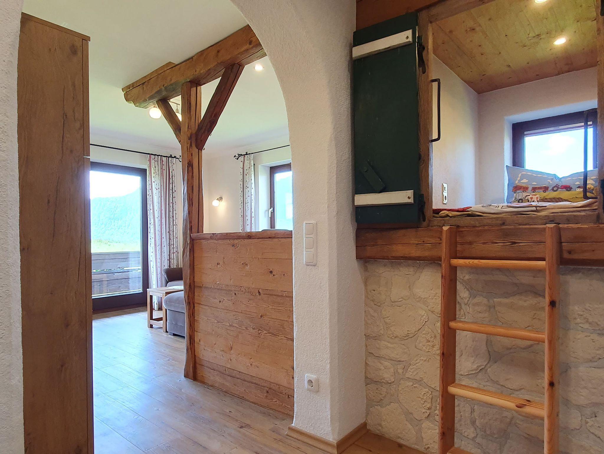 Die Ferienwohnung Staufen ist mit 4 Sternen klassifiziert und hat 45m². Geeignet für 1-3 Personen hat sie eine Wohnküche mit komplett ausgestatteter Küche, sowie Essbereich und gemütlichem Sofa mit Fernseher, 1 Schlafzimmer mit Doppelbett, 1 Schlafscheune, Bad mit ebenerdiger Dusche und WC. Direkter Ausgang auf den Balkon mit Tisch und Stühlen, Sonnenliegen und herrlichem Bergblick.