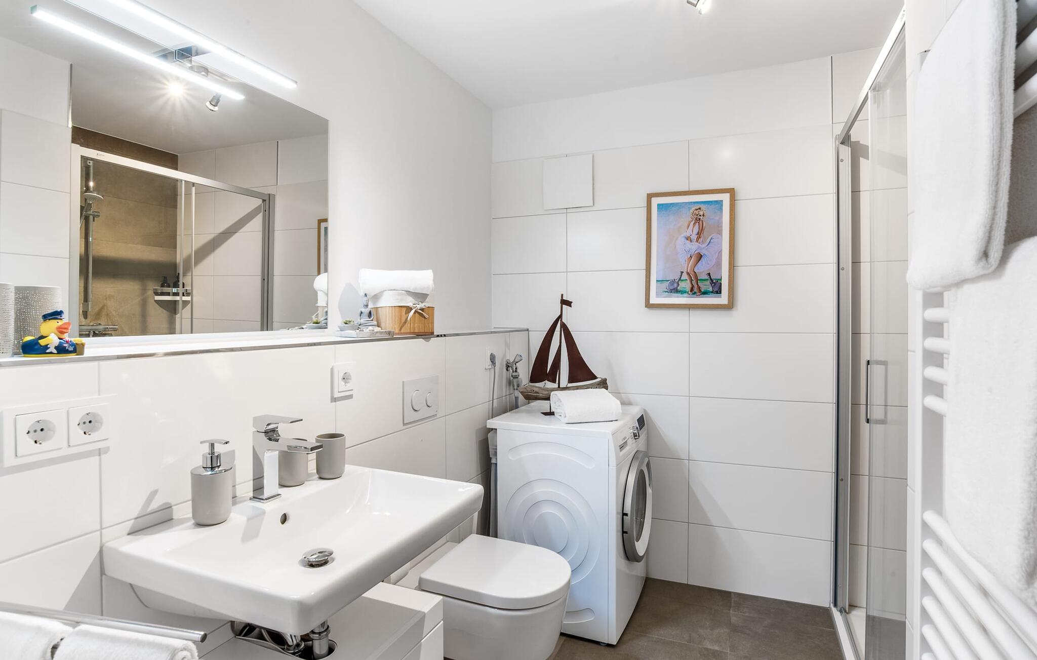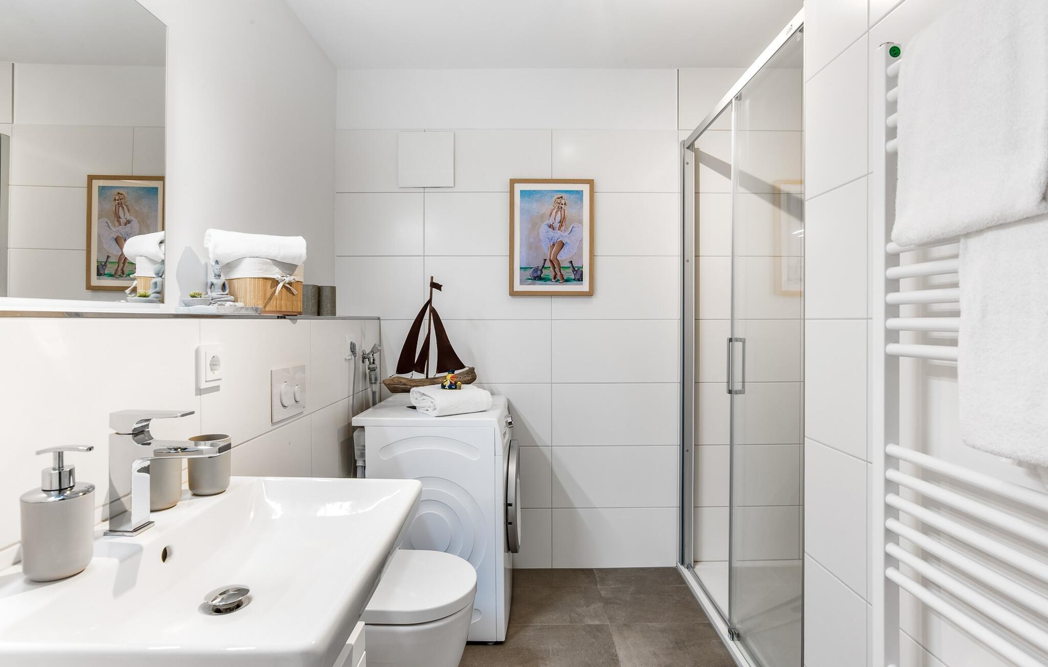 Das Bad lässt ebenfalls keine Wünsche offen und bietet mit der bodengleichen Dusche eine wohltuende Erfrischung nach einem langen Spaziergang.
