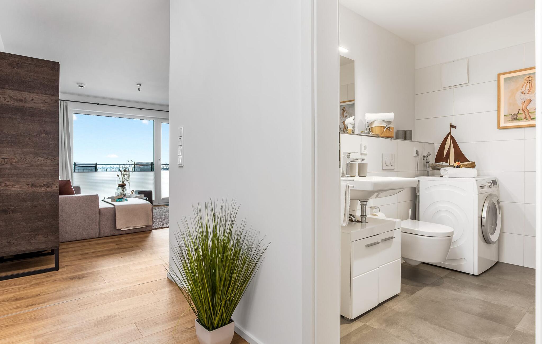 Elegant und modern, zentral und doch ruhig, gepaart mit einem traumhaften Blick auf den Olpenitzer Hafendas beschreibt die Wohnung PIER 10.