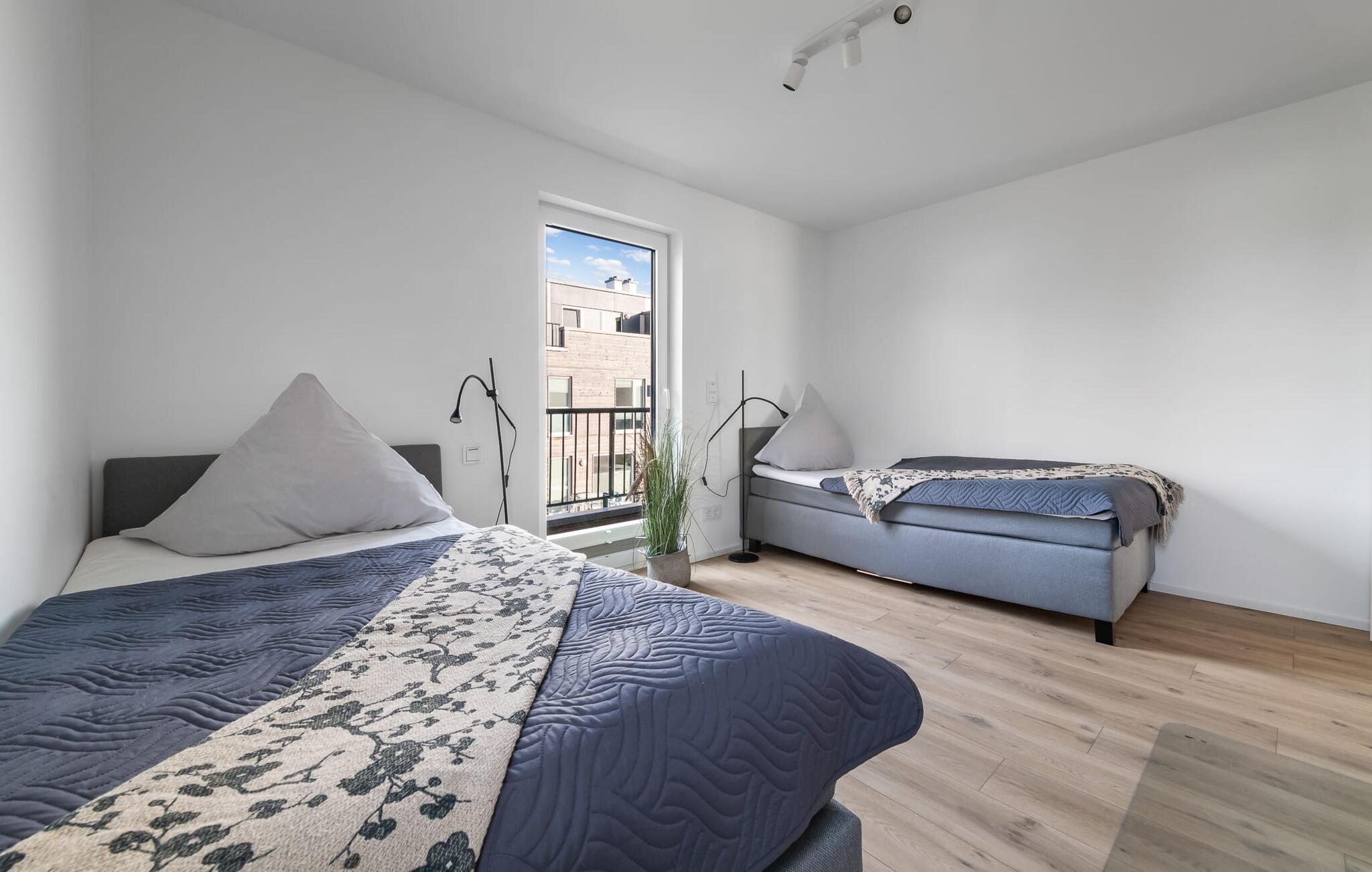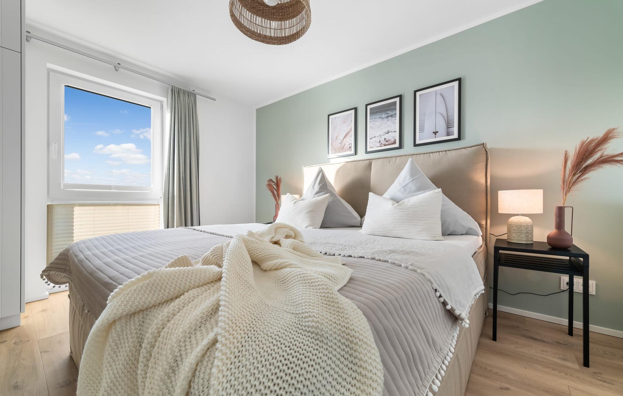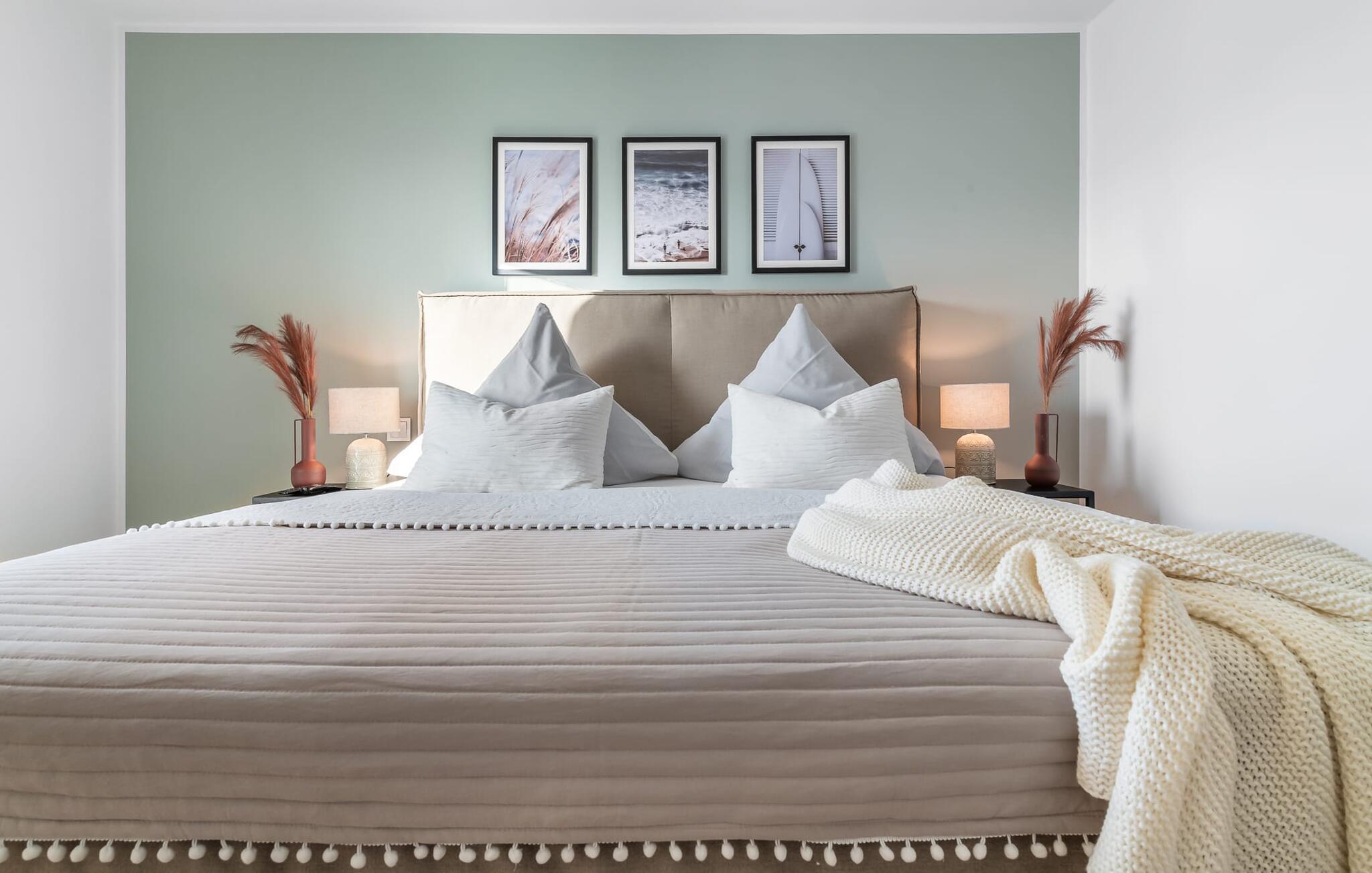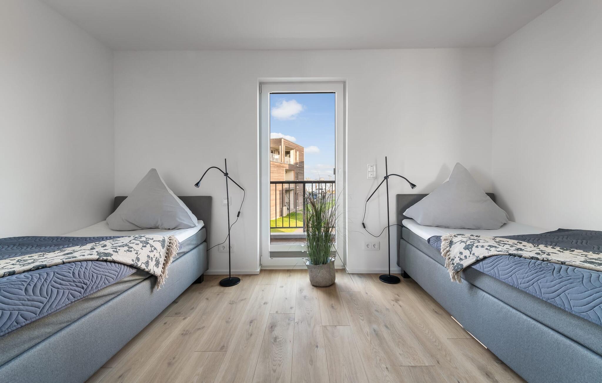 PIER 18 sorgt für Urlaubsfeeling! Die helle und freundliche Einrichtung sorgt für entspannte Stimmung. In der ersten Etage befinden sich die drei Schlafzimmer der Wohnung mit insgesamt zwei Doppel-Boxspringbetten und zwei Einzel-Boxspringbetten. Egal für welches Schlafzimmer ihr euch entscheidet, erholsamer Schlaf ist euch sicher. Die Schlafzimmer sind jeweils mit einem OLED TV zur Unterhaltung ausgestattet.