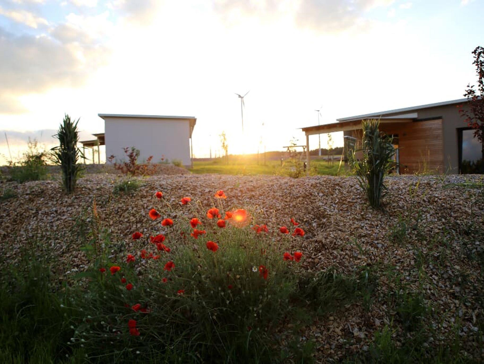 Mit unseren je ca. 44 m² großen einzeln stehenden Chalets mitten im Grünen haben wir ein Areal geschaffen, in dem Sie Auszeit nehmen können, Einblick nehmen können in ländliches Leben, aktiv sein können, eintauchen können in eine Oase für die Seele. Sie entscheiden, ob Sie für sich alleine bleiben wollen oder in Gemeinschaft mit uns und den anderen Gästen aktiv werden. In den 3 identisch aufgebauten Übernachtungschalets befindet sich jeweils ein großes Schlafzimmer für 2 Personen und ein kleineres für 2 Kinder oder einen Erwachsenen. Im Wohn/Essbereich gibt es zudem ein Schlafsofa. Eine kleine, aber komplett ausgestattete Küche inclusive Geschirrspüler und großem Kühlschrank lädt zum Kochen und Genießen ein. Im Duschraum liegen Handtücher und ein Fön für Sie bereit. Eine überdachte Terrasse lädt zum Verweilen an der frischen Luft ein. Die Terrassen sind von den anderen Chalets aus nicht einsehbar. Areal und Chalets sind ebenerdig angelegt und auch für ältere Menschen gut begehbar. Selbstverständlich verfügen die Chalets über WLAN. Wenn sie möchten bieten wir Ihnen morgens ein Frühstück in unserem Seminar-Chalet mit Gemeinschaftsraum, großer Terrasse und Profiküche. In diesem Chalet sind Ihre Haustiere auf Anfrage willkommen.