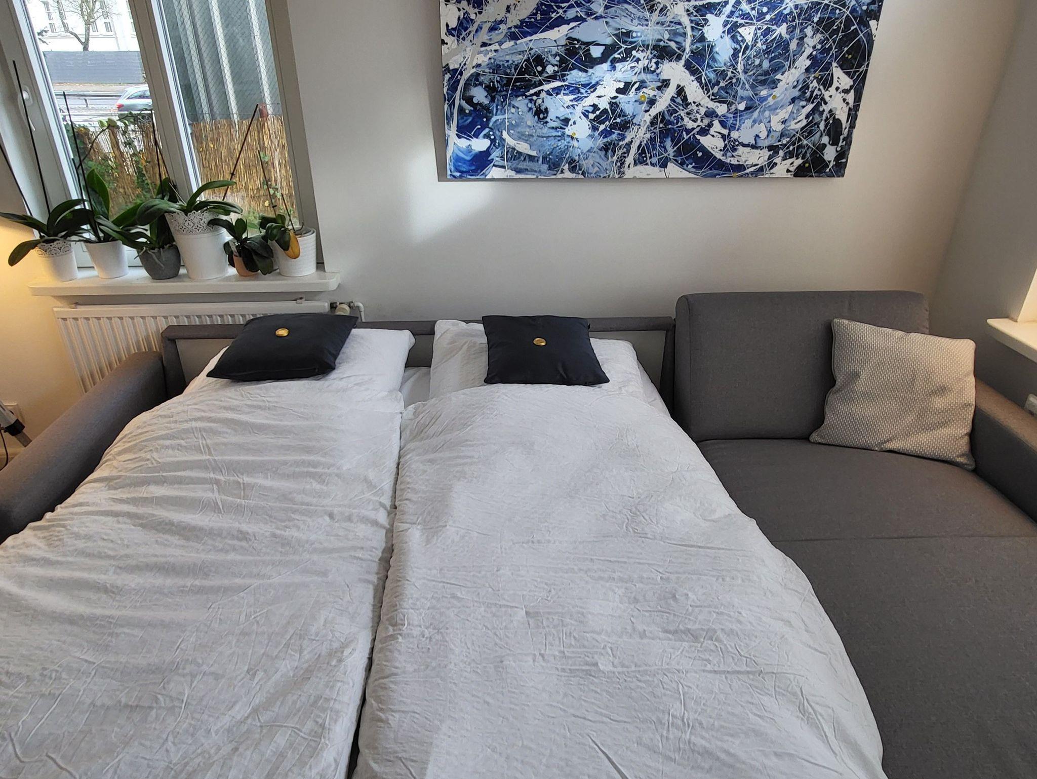 Dieses 80qm Apartment umfasst Wohn- und Esszimmer, Schlafzimmer, Küche und Bad.