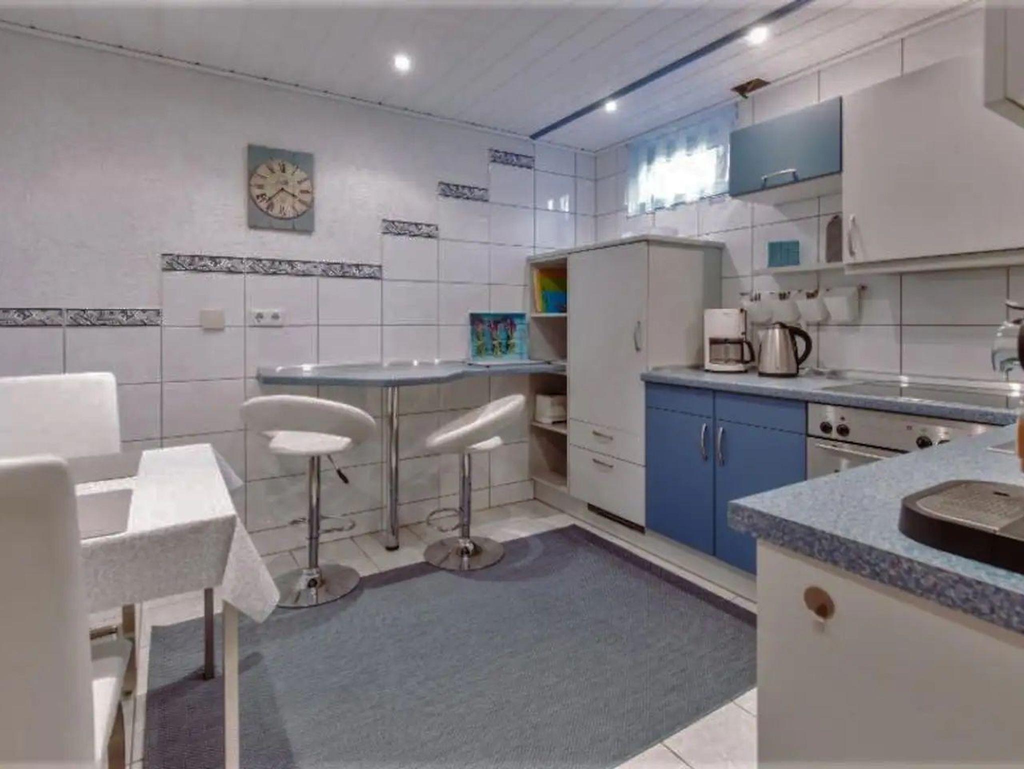 Die Ferienwohnung hat ein Wohnzimmer, eine Küche mit Essecke, Bad mit Dusche und WC sowie ein Schlafzimmer mit einem Doppelbett. Auf Wunsch kann ein Baby- bzw. Kinderbett bereitgestellt werden.