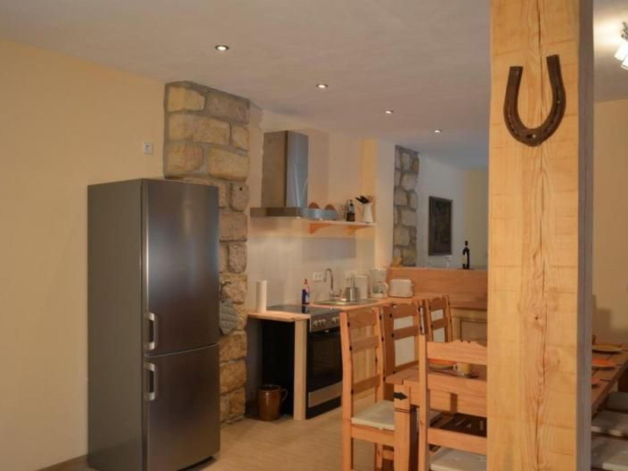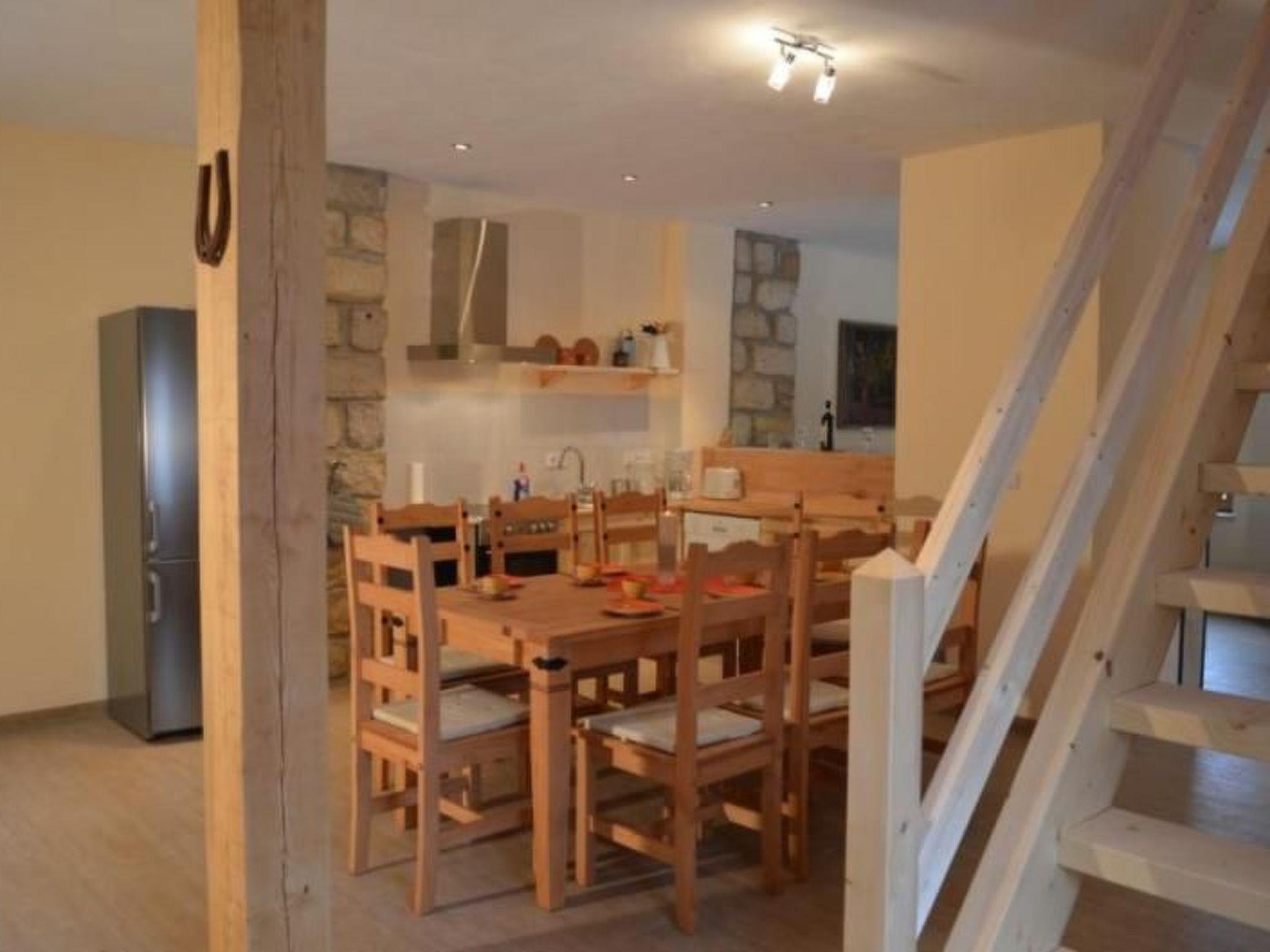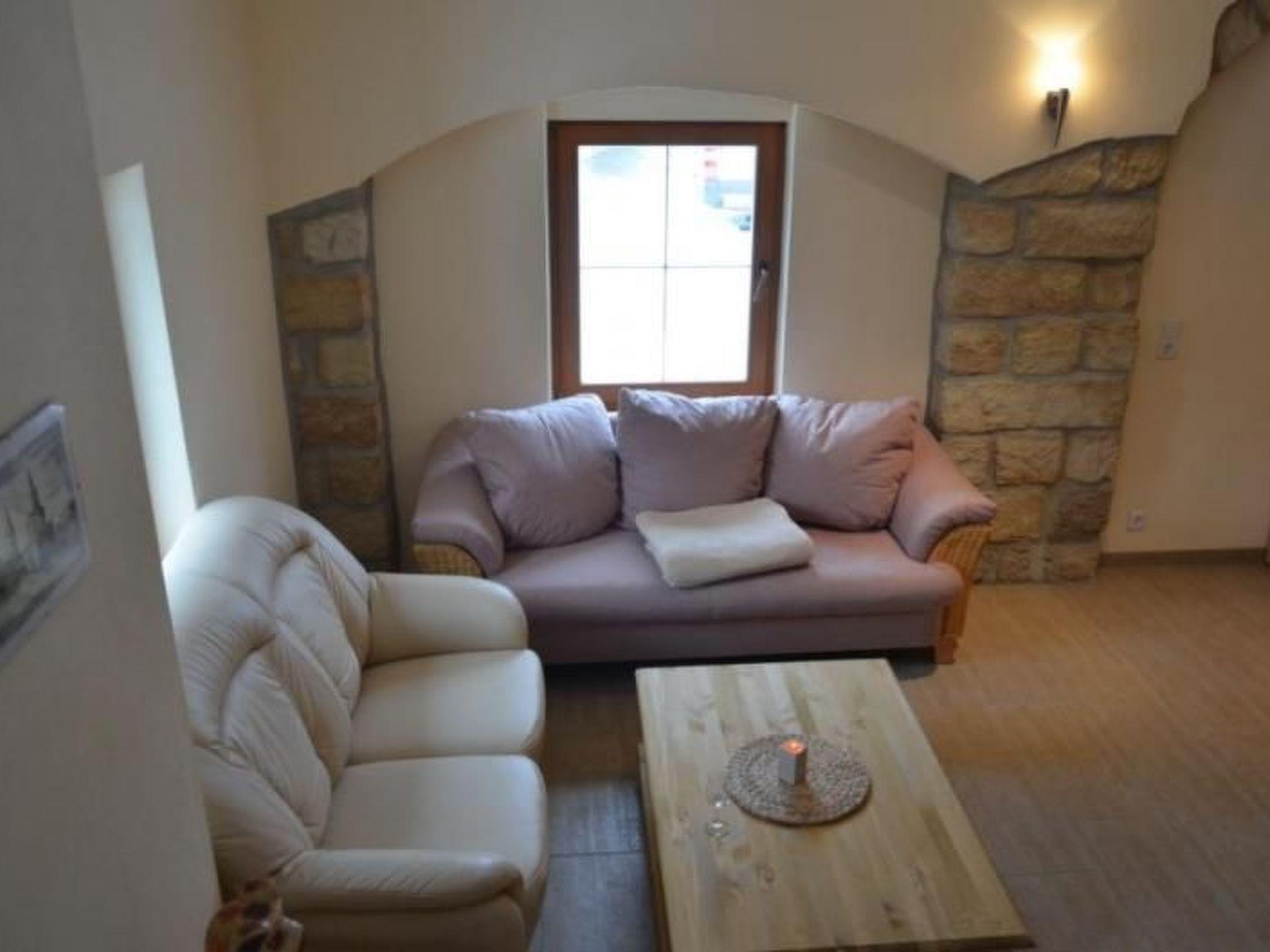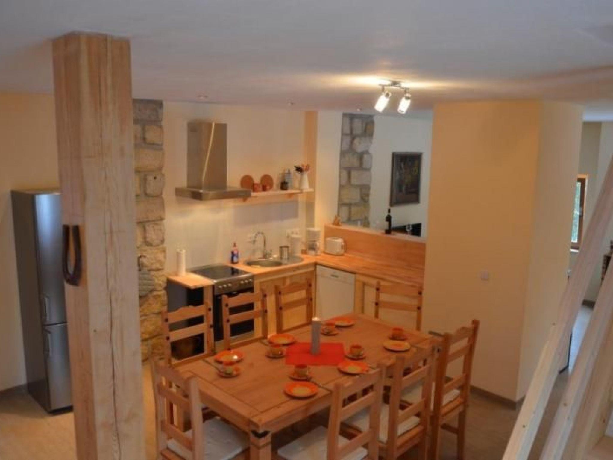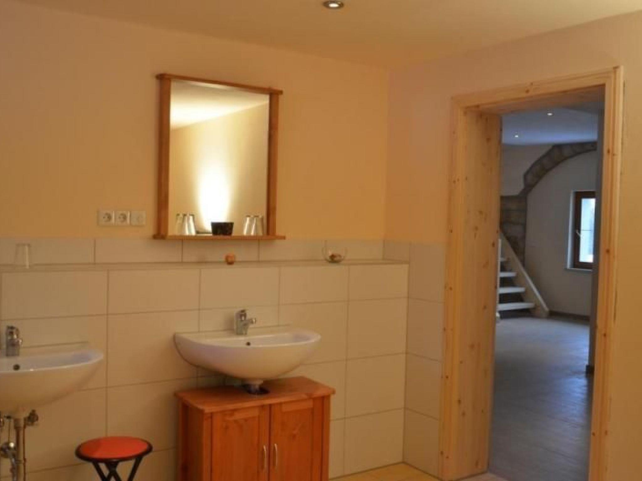Das Ferienhaus am Bärenstein für zwei bis acht Personen ist liebevoll saniert mit einer Gesamtwohnfläche von mehr als 140 m². Im Erdgeschoss befindet sich ein großer Eingangsbereich mit Sitzecke, ein großes Bad mit zwei Duschen, zwei Waschbecken und WC sowie ein 55 m² großer Wohnraum mit Küche, Kaminofen, großem Esstisch, einer Bar und einer gemütlichen Sofaecke. Die Küche ist noch ausgestattet mit 4er-Cerankochfeld mit Backofen, großem Kühlschrank mit Gefrierfach und Geschirrspüler. Der Wohnraum verfügt über einen Fernseher, DVD-Player, Radio und CD-Player sowie einer Wlan-Internet DSL 6000 Leitung und einem Kaminofen. Das gesamte Haus hat eine Zentralheizung. Im unteren Bereich ist das Haus zusätzlich mit Fußbodenheizung ausgestattet. Die Zentralheizung ist inklusive. Kaminholz zum Einkaufspreis. Im Dachgeschoss befinden sich zwei 2-Bettzimmer, ein 4-Bettzimmer sowie eine Toilette. Es stehen insgesamt drei Schlafzimmer zur Verfügung.