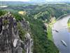 Über der sich am Kurort Rathen dahinschlängelnden Elbe ragt malerisch die "Bastei" auf, ein 194 m hoher Felsrücken, der die bekannteste Aussicht der Sächsischen Schweiz freigibt. Da gibt es Gründe zum Wandern und zum Verweilen: Auf- und Abstieg durch schmale Schluchten, faszinierende Felslandschaft, Blicke weit hinein in die Sächsische und Böhmische Schweiz. Spazieren Sie durch den Felsgarten, über die 76 m lange, steinerne Basteibrücke zur Burg Neurathen. Kehren Sie ein in das idyllisch gelegene Hotel- und Gaststättenensemble.